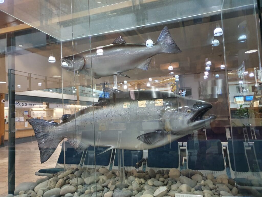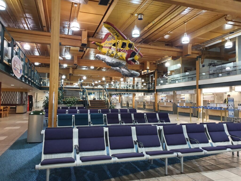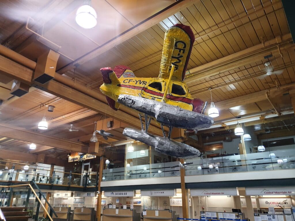 Inside, the South Terminal offers a unique, local and somewhat homely vibe – its interior serves to be a sort of cross between a British Columbia log cabin and an airport terminal. Proud of its local importance in connecting Vancouver with towns and cities across the province, those with time to spare can examine the terminal’s interesting artefacts and displays, including several fish-related displays, and a selection of photos and pieces of information relating to Vancouver Airport’s history. However, perhaps the pièce de résistance is the papier-mâché De Havilland Otter that dangles from the ceiling in honour of the type that has long played a vital role in connecting some of the more remote parts of the region. Once passengers have exhausted the displays, the terminal is also home to a gift shop and café, alongside the Langara Fishing shop and a St. Jean’s Cannery and Smokehouse store. However, given the early hour, unsurprisingly all facilities were yet to open and thus those needing some sustenance were forced to rely on two vending machines – one for drinks and another for snacks. As one would hope, the terminal appeared to be clean and was in good condition. Additionally, several charging points could be seen dotted about for those needing to charge their devices. As in the rest of Vancouver Airport, complimentary wifi is offered which worked well for the duration of my stay.