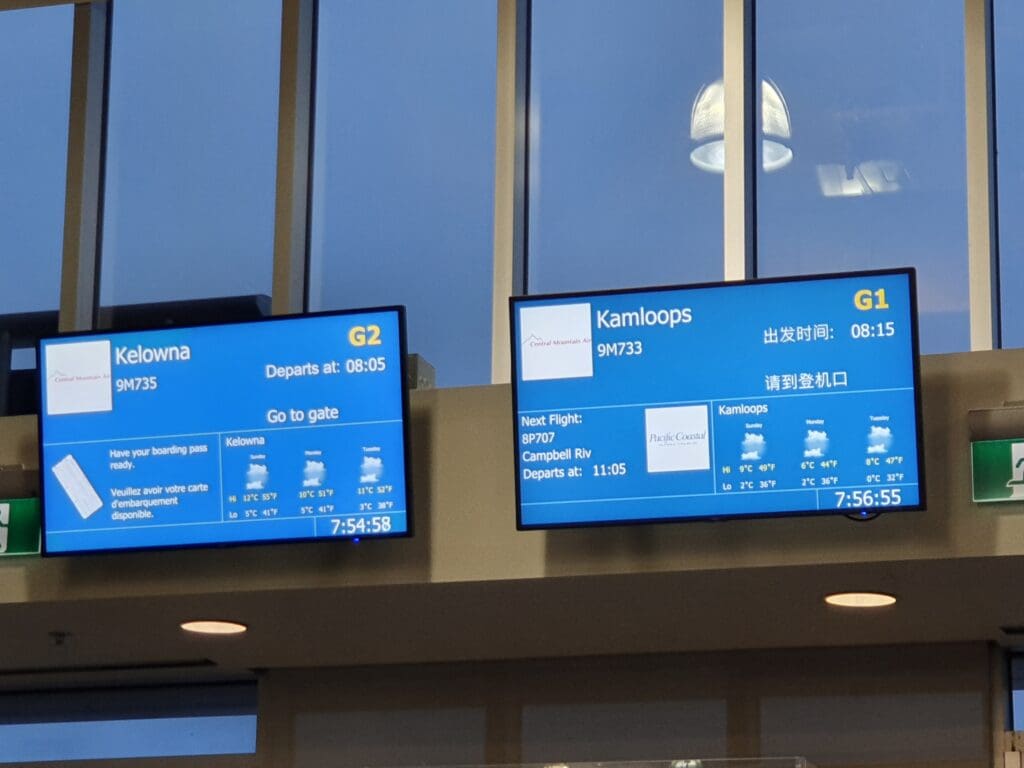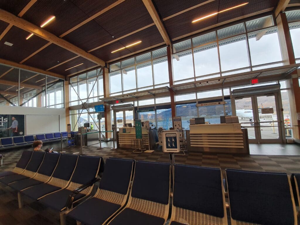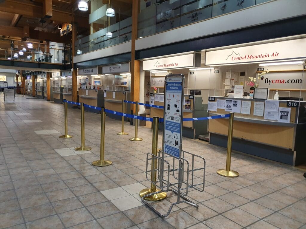 Upon arriving at the terminal, only one other passenger could be seen waiting, however unsurprisingly we were soon joined by a host of other passengers. That morning, a total of five departures could be seen on the departure boards before my Central Mountain Air flight to Kamloops. These consisted of Pacific Coastal Airlines’ services to Campbell River, Cranbrook and Masset, a North Cariboo Air flight to Smithers as well as the other Central Mountain Air flight to Kelowna. Around ten minutes after I arrived, two agents appeared at Central Mountain Air’s four check-in desks and seeing no reason not to, I walked over to these in the hope of receiving a paper copy of my boarding pass.