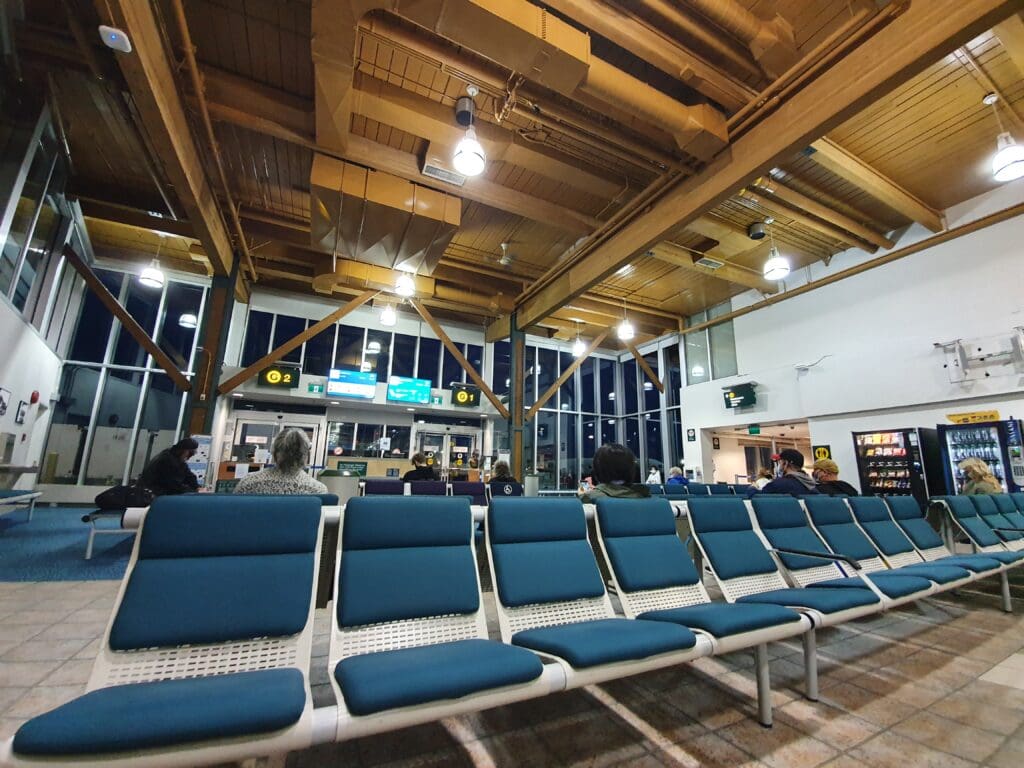Returning to the journey in hand, the South Terminal features a total of three gates – with Gate 1 separated from the other two and featuring its own security check area. Once the checkpoint had opened up, I decided to head through this. Seeing as I arrived with no other passengers in front of me, security was a breeze and the staff members there were pleasant and friendly. Examining the airside area, it is clear that this was not designed with any long waits in mind, consisting of a small hall with little other than toilets, seats, plug sockets, two vending machines and a payphone. Meanwhile, large windows offered a decent view of the aircraft waiting on the ramp outside. At that time, these consisted of a mixture of Pacific Coastal Airlines’ Beechcraft 1900Cs and 1900Ds and Saab 340s. Whilst this area had initially been busy, once Pacific Coastal’s flights bound for Campbell River and Cranbrook had boarded, a total of just eight passengers could be seen waiting for Central Mountain Air’s two flights to Kamloops and Kelowna.