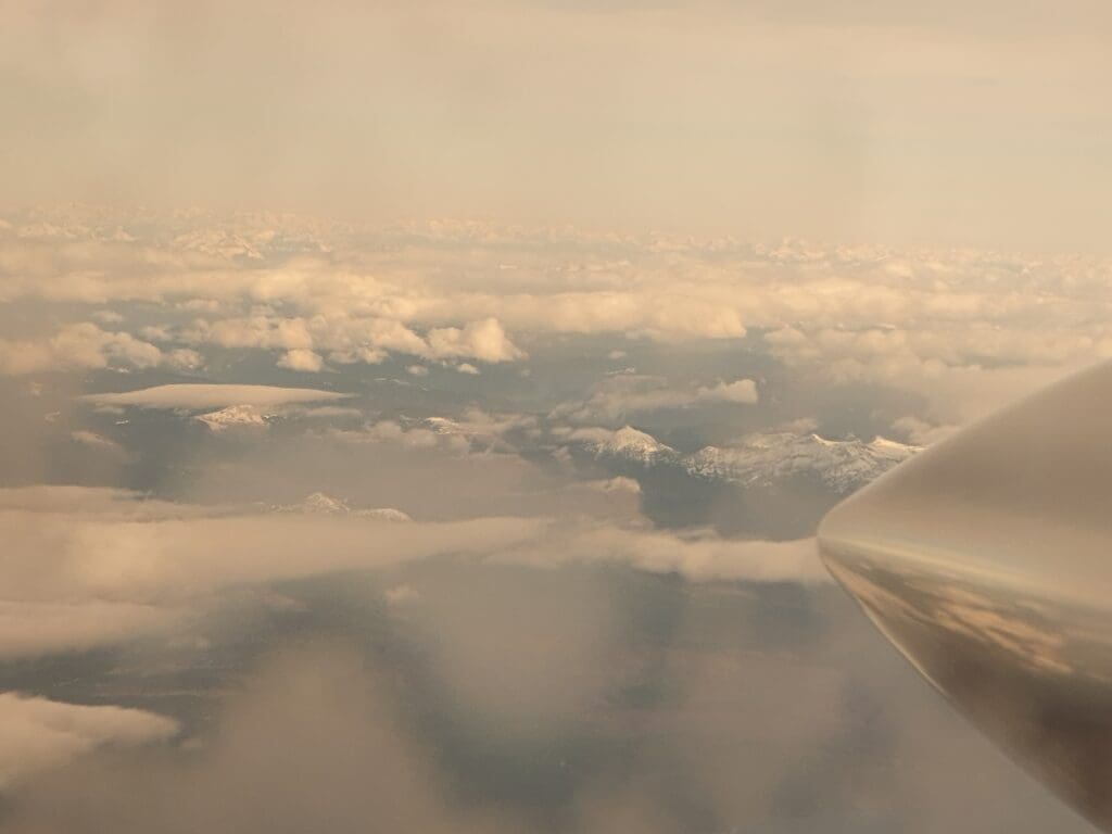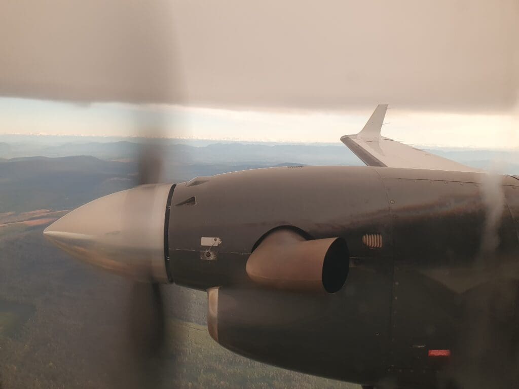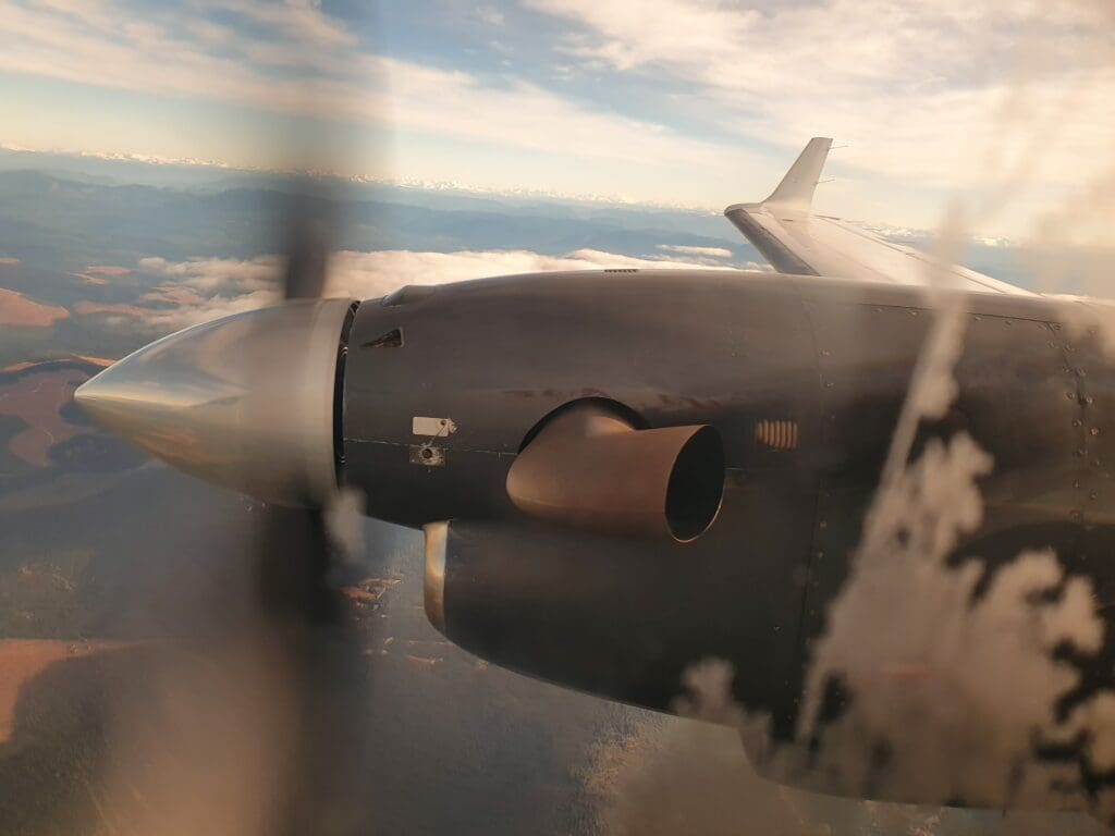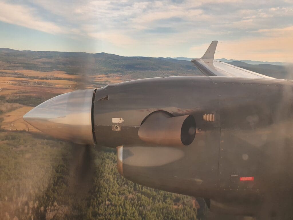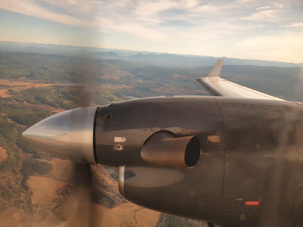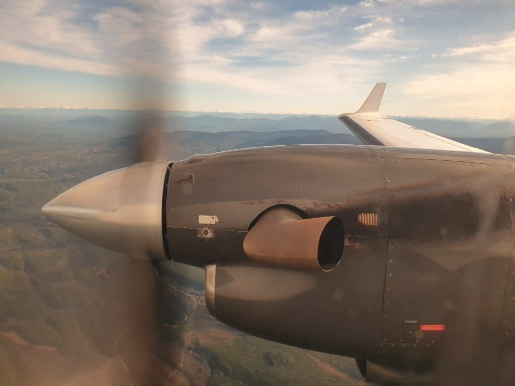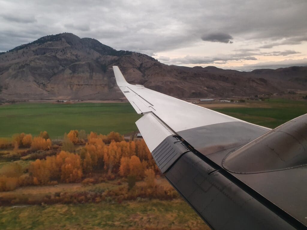 At 0949, the aircraft entered the runway and made a short taxi to the end of this before turning around. Despite this backtrack, at 8,000 feet long, Kamloops’ main runway is more than long enough for any small turboprop. In fact, once upon a time the airport was served by Pacific Western Airlines’ Boeing 737-200s, and more recently a Royal Canadian Air Force CC-150 Polaris (Airbus A310) visited following the tragic crash of a Snowbird CT-114 in the city in May 2020. Once pointing in the correct direction, the Beechcraft performed a rolling takeoff, with seat 2B offering a significantly higher level of noise and vibrations than 8A. Despite the higher load on this sector, once again the aircraft rocketed upwards in what seemed like no time at all with the hangars to the south of the runway soon coming into view before leaving the airport behind and heading over Kamloops Lake. In no time at all, the gear and flaps were retracted and almost immediately after departure, Kamloops’ large pump mill, operated by Domtar could be seen. From there, the aircraft climbed over the centre of Kamloops before turning onto a northerly heading and rising into the white clouds, eventually settling at a cruising altitude of 22,000 feet.