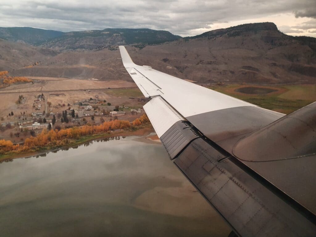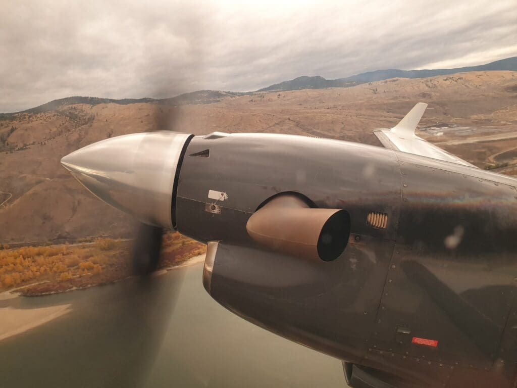 After what seemed like no time in the cruise at all, the Beechcraft could be felt commencing its way down back towards the ground. This was soon followed by a loud ding and a quiet announcement from the captain who advised all four passengers that we could expect to be on the ground in ten minutes’ time. Several minutes later, British Columbia came into view once again with the expanse of Canada’s largest open-pit copper mine, the Highland Valley Copper Mine, appearing beneath the turboprop. This was soon replaced by vistas of forests, lakes and mountains as the aircraft continued onward towards Kamloops.