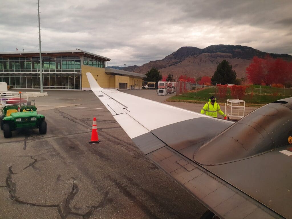 Around 160 miles, or 37 minutes’ worth of flying, at 0914 the turboprop made a firm touchdown in Kamloops. With the pilots likely wishing to minimise taxi time, the aircraft decelerated slowly and a host of light aircraft, both with wheels and floats appeared on both sides of the airfield before the aircraft eventually vacated the runway to the left. Once off the runway, Kamloops Airport’s low-rise control tower and neighbouring slightly dated looking terminal appeared whilst inside the cabin a pre-recorded announcement rang out requesting all passengers to remain seated. That morning, no other airliner could be seen at the terminal, something that was not particularly surprising given the fact that Kamloops Airport can hardly be described as one of Canada’s major air hubs. At 0919, the Beechcraft came to a halt at stand one where two ground agents could be seen waiting to tend to the aircraft and ready it for its next flight up to Prince George.