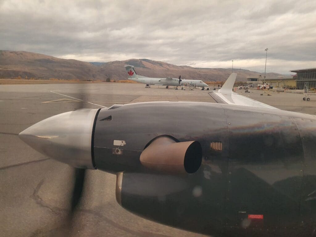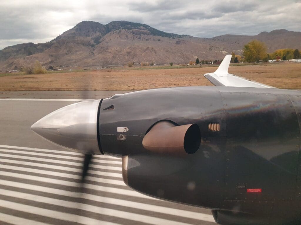 Soon enough, the flight’s scheduled departure time came and went with no update, however, it appeared that the gate agent was waiting for the Kelowna-bound Beechcraft to commence its taxi before allowing those bound for Kamloops to board. At 0820, the flight’s First Officer appeared outside the terminal and following a quick conversation, the gate agent announced the commencement of boarding. Ending up second in the queue, the friendly gate agent checked my boarding pass and passport before crossing my name off the passenger manifest and wishing me a nice flight. Heading through the doors and into the open air, I was greeted by the First Officer who, once all passengers had had their documents checked, led us all around the corner where the distinctive small turboprop could be seen waiting to head north.