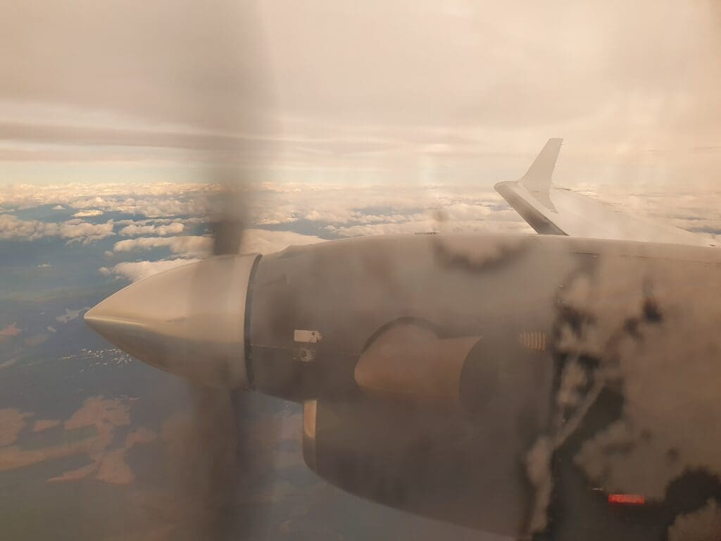 As the Beechcraft cruised along, around halfway through the flight, the sound of something hitting the fuselage could be heard as if the aircraft was flying through a hailstorm. Having read various things on this, one potential explanation for this was that this was ice shedding from the props being flung towards the fuselage, which is a common phenomenon when the type is flown in icing conditions. I should also add that whilst in the cruise, perhaps as I was seated near the rear of the cabin, the two Pratt and Whitney engines did not appear to be overly loud which is of course not always the case on small turboprops.