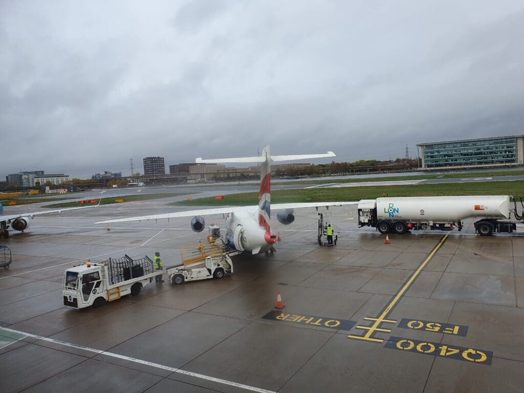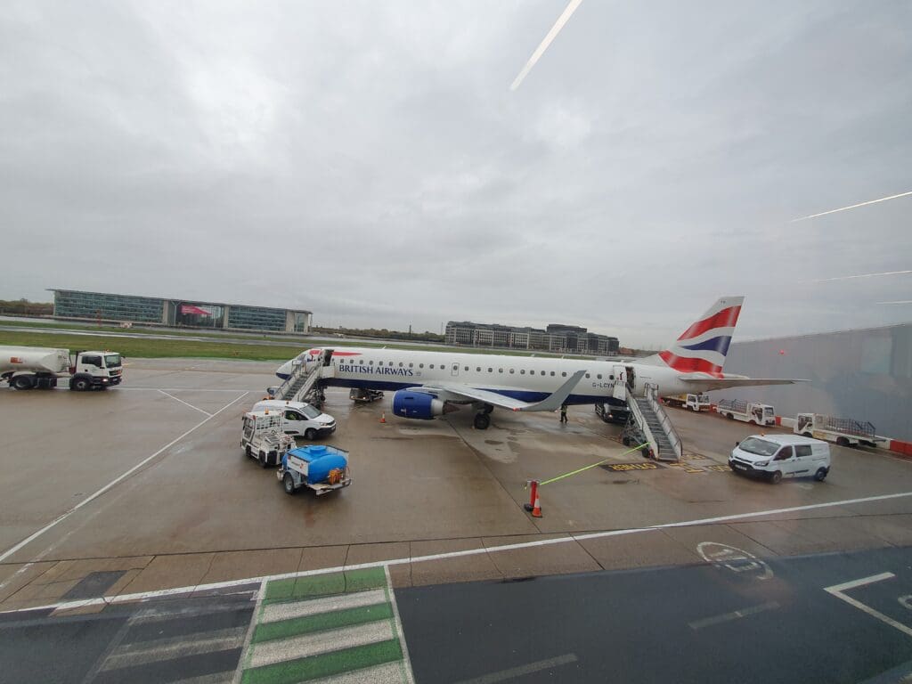 Aviation enthusiasts will be glad to hear that views onto the apron and runway can be had thanks to large windows throughout much of the terminal. After having a brief explore, I plonked myself down next to one of these and watched as aircraft came and went below. At the time of my flight in November 2022, London City Airport was served by nine airlines from across Europe and during my stay I managed to see aircraft from eight of these – BA CityFlyer, German Airways (operating for ITA Airways), KLM Cityhopper, Loganair, Lufthansa Cityline, Luxair, Sun-Air and Swiss. Whilst the Jumbolino quadjet once ruled the roost at the airport, today this role is filled by the Embraer 190 – with these currently undoubtedly serving as the aircraft of choice for many airlines serving the airport. In addition to scheduled services, I also spotted a Luxaviation Belgium Cessna 560XL Citation touch down at the end of its quick 40-minute hop from Brussels followed later by a NetJets Europe Embraer Phenom 300 touching down from Stuttgart.