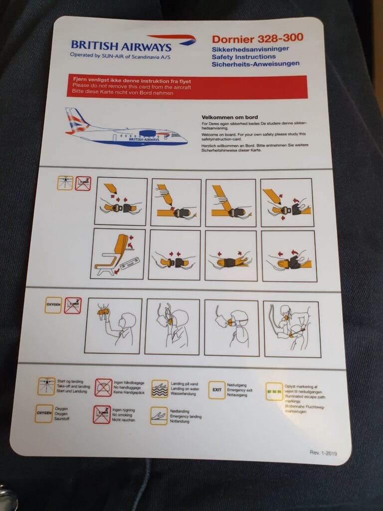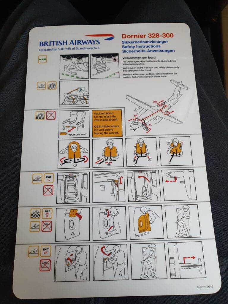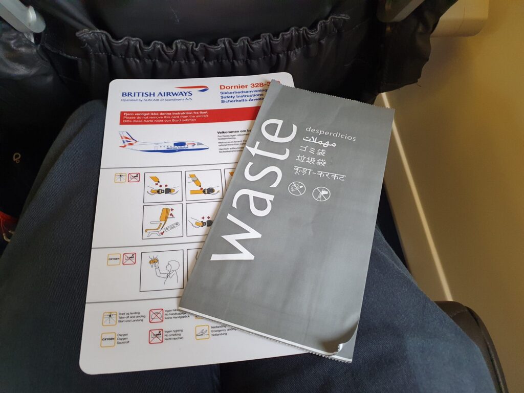 Upon taking my seat, I was pleased to find this to be very soft and comfortable – far more so than the slimline seats that can be found on many airliners the world over today. Furthermore, these provided a decent amount of legroom for a regional jet, although perhaps not as much as that as can be had on BA CityFlyer’s Embraer 190 fleet. Whilst the cabin seemed to be a little dated in its design given the fact that the aircraft was only two decades old, this appeared to be in an immaculate condition with no major signs of wear and tear. Furthermore, this seemed to have been well cleaned during its short stay on the ground in London, with no signs of rubbish anywhere around my seat. Continuing with the positives, the Dornier’s large cabin windows allowed for light to pour in and gave the cabin a rather bright and airy feel which was complemented by some retro-ish yellowy cabin lighting. Turning to the seatback pocket, this contained a safety card as well as a British Airways branded sickbag, with no inflight reading material provided.