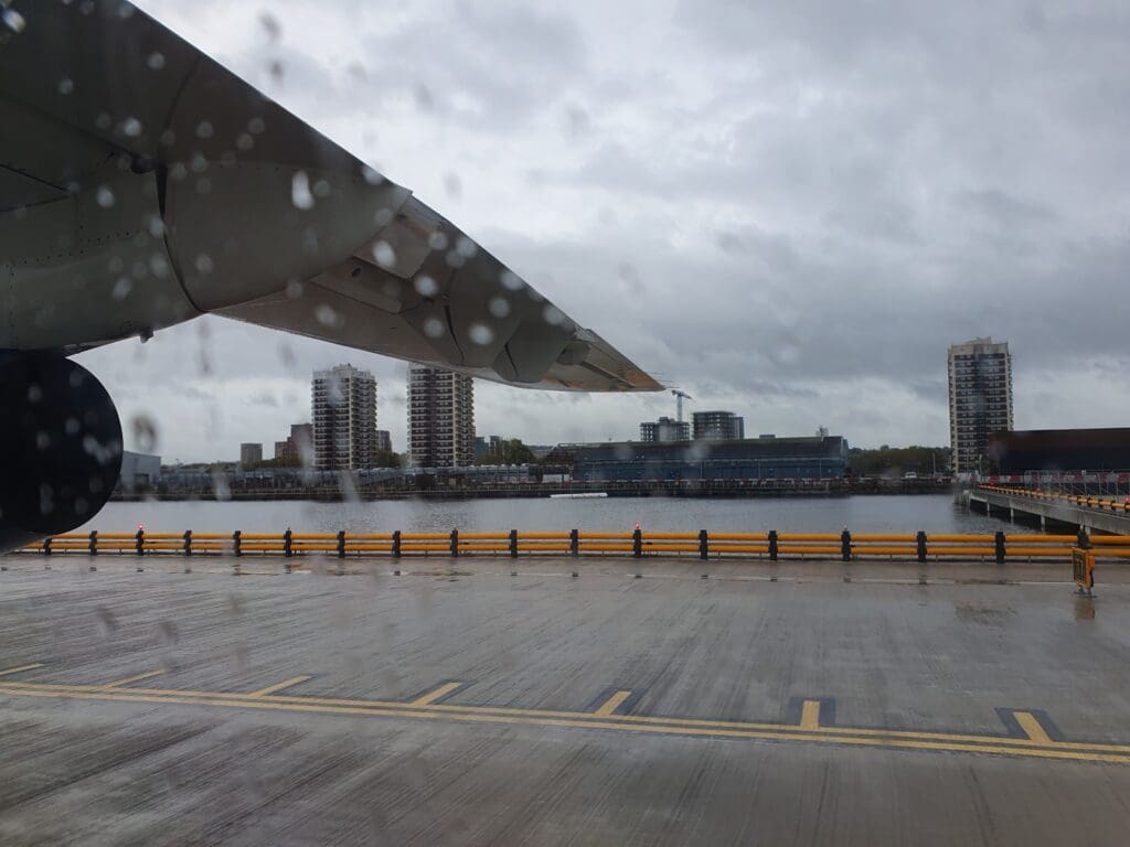 Following a quick journey, the Dornier made its way onto Runway 27 without any holding before lining up on the centreline and coming to a halt. Pausing for around a minute, this allowed me enough time to admire the brightly coloured buildings of the University of East London before the Dornier’s two jet engines roared into life and the aircraft began to accelerate down the rain-soaked runway. Given the very light load that morning as well as the Dornier’s two powerful jet engines – capable of delivering a combined total of 53.8 kN (12,000 lbf) of thrust, that morning I expected that we would soar upwards into the skies like a fighter jet. Indeed, after being pinned back into my seat as the aircraft rolled down the runway, the Dornier rocketed upwards in what seemed like no time at all. This allowed for a birds eye view of the path that runs on the northern side of Royal Albert Dock – a popular spotting spot.