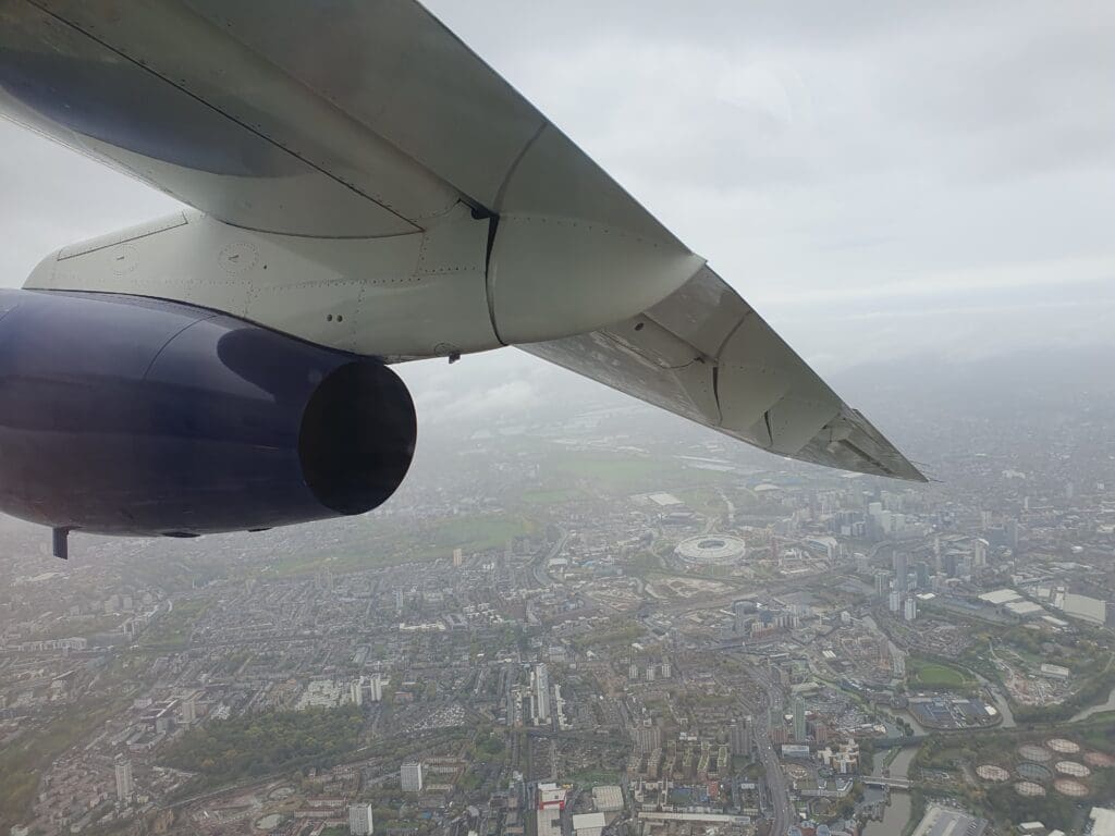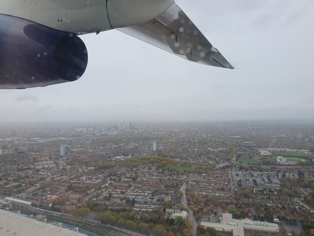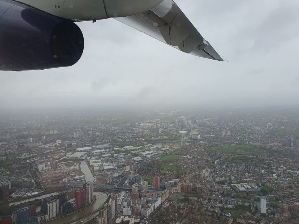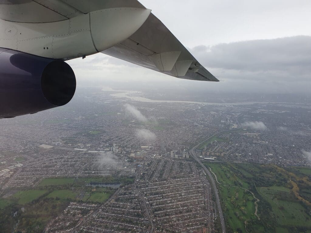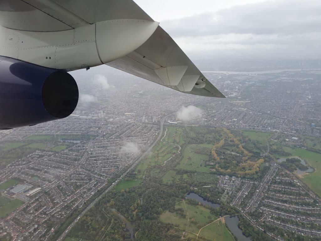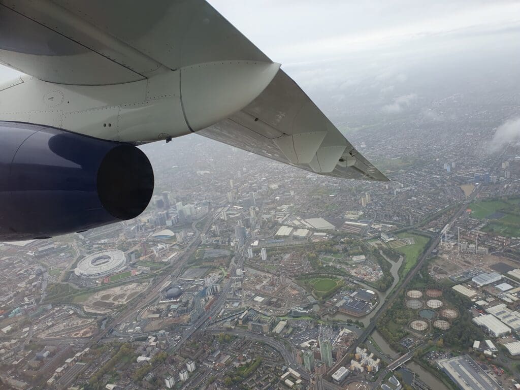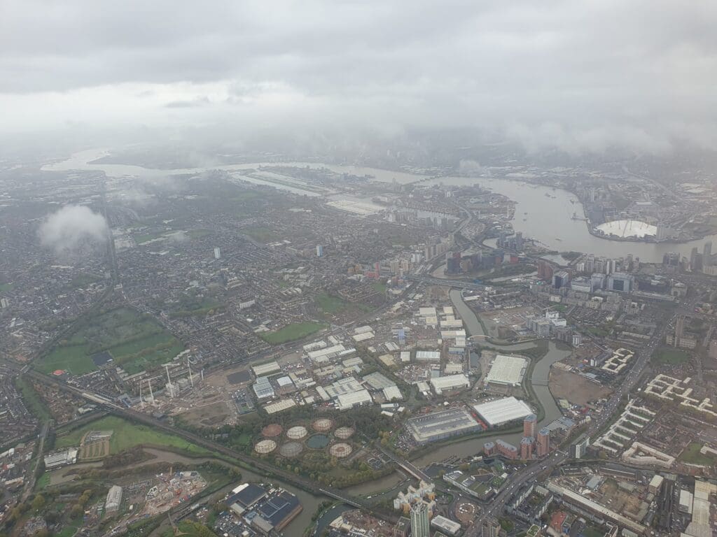 Once up in the grey London skies, the gear and flaps were soon retracted and the aircraft left London City Airport behind, crossing over Connaught Bridge and out over Royal Victoria Dock before continuing westwards for around a minute after departure. Just before reaching Canary Wharf, the Dornier banked to fly north towards the East London area of Stratford. Whilst admittedly not as exciting as making an approach into London City Airport’s Runway 09 over Central London, I was treated to a good view of Stratford’s Olympic Park, including its stadium which is now home to West Ham FC, the local Westfield shopping centre – the fourth largest in the UK, and the UK’s busiest railway station, Stratford station. As we crossed over Stratford, the Dornier temporarily levelled off at around 3,000 feet which allowed for a good view of Wanstead Park and Ilford Railway Depot as we flew eastwards.