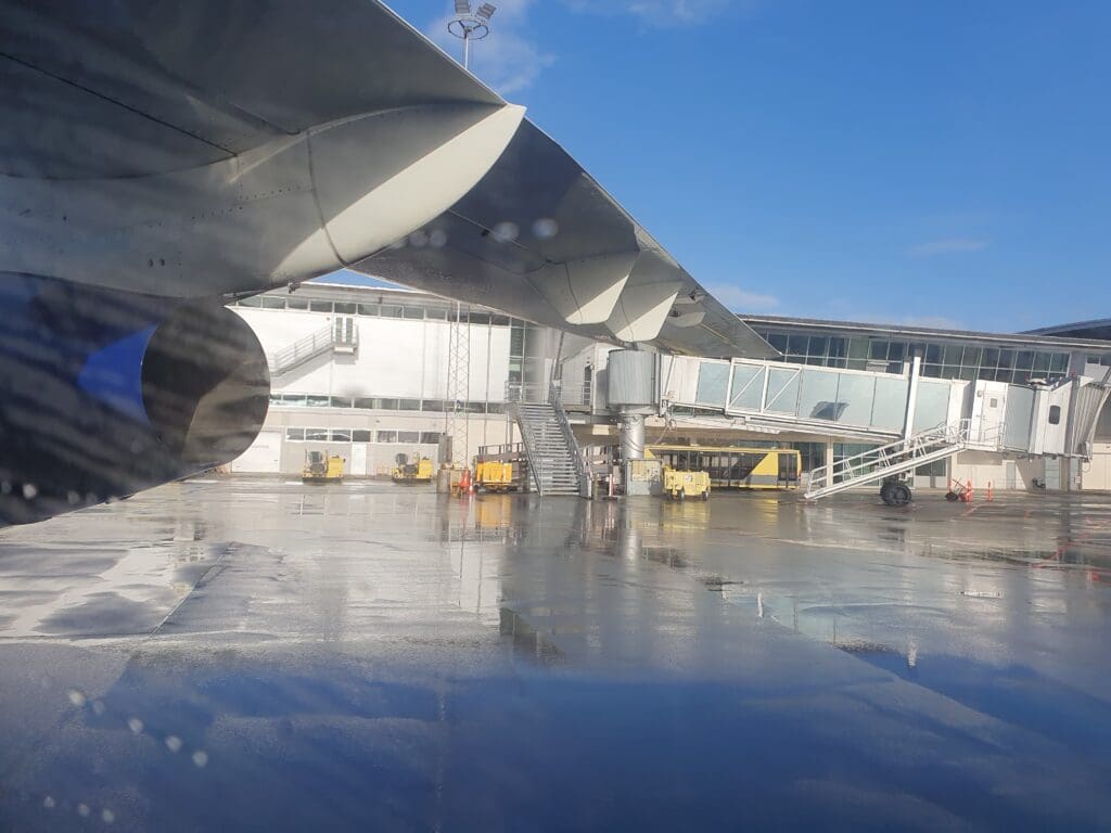 Soon vacating the runway, the Dornier made a quick taxi over to the terminal as the flight attendant’s welcome announcement rang out through the cabin. A very short time after leaving the runway, the Dornier came to a halt at Stand 27/28, pulling in next to a corporate liveried Sun-Air Dornier 328 Jet that had arrived on the airline’s other scheduled service from Manchester a short time earlier. Once the aircraft came to a standstill and the engines spooled down, unlike on many other flights passengers appeared to be in no rush to exit the aircraft and all remained seated until the flight attendant permitted us to disembark. With no jetbridge to be connected, once the cabin door was open it didn’t take long for disembarkation to commence, and despite being the last to exit the aircraft, I soon thanked the flight attendant before heading down the aircraft’s steps and out into the fresh Danish air.