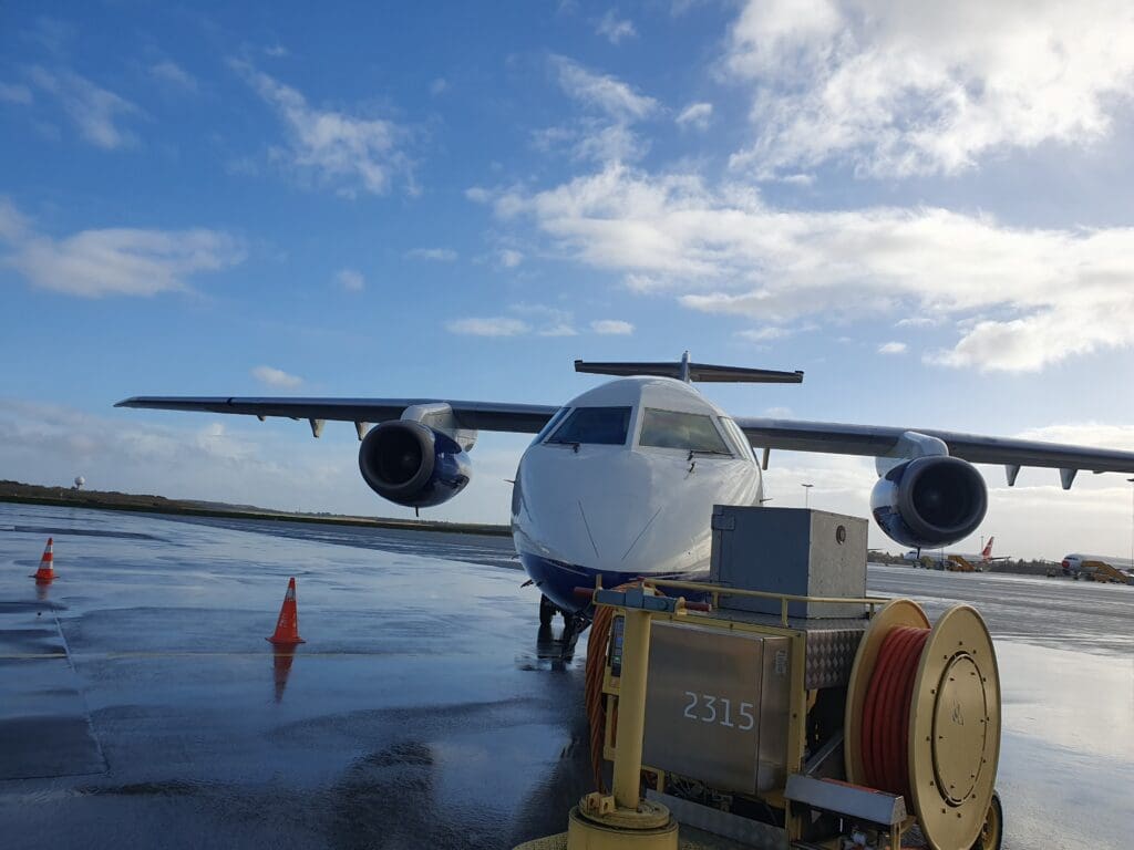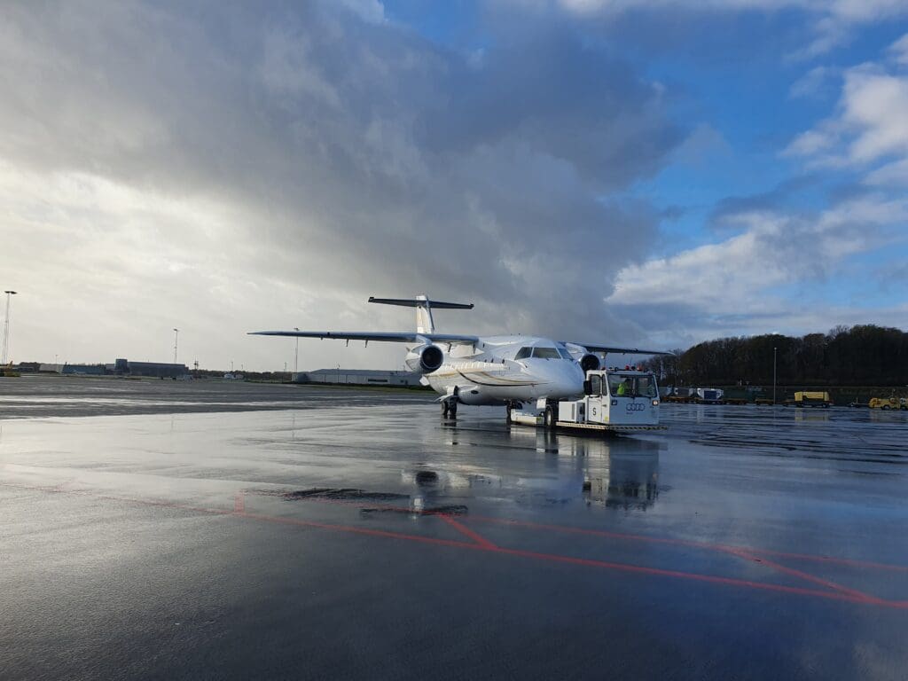 Watching as our shadow grew increasingly closer, soon, the Dornier whizzed over Billund Airport’s perimeter fence and a long retired Bombardier CRJ once operated by Danish regional airline Cimber Air appeared – this now being used as a fire and rescue trainer. Following a fantastic 1H21 in the air, at 1208 the Dornier touched down on Billund Airport’s Runway 27 with a firm thud before the large speedbrakes popped up from the wing and the aircraft decelerated rather quickly. As the aircraft slowed, Billund Airport’s modern terminal soon came into view near which four aircraft could be seen – two stored Embraer 195s belonging to the ill-fated Great Dane Airlines, as well as a Copenhagen Air Taxi Boeing 737-400 and a DAT Airbus A320.
