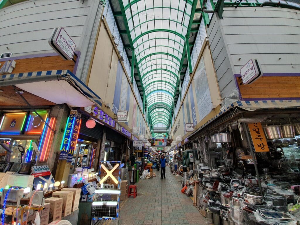 Given my fondness for Busan, had I had no commitments back in London, I could have easily stayed in the coastal city for another few weeks or months! Fortunately, the excitement of travelling to a new country with, what was for me, a rare airline, assisted in alleviating the gloom of leaving Busan. Plus, the last minute schedule change allowed me to spend a few extra hours in the city before I commenced my long trek back to Europe. Having spent much of my stay on the beaches, coastal walkways and mountains at the eastern end of the city around Gwangan and Haeundae, that morning, I decided to have a leisurely stroll around Nampo at the opposite end of the city. This district is a popular tourist hotspot that sits near the city’s main station, however, my choice to visit that day was mainly based on the fact that it is somewhat closer to the airport. After leaving my AirBnb at around 1000, I caught a Line 2 subway westwards, changing once in Seomyeon onto Line 1 before eventually arriving at Nampo. Still with a small suitcase in tow, as I had planned, I left this in a locker at the station before I journeyed into the warm morning air. Despite spending the second week of June in Korea, I had been very lucky in the fact that the weather for much of my stay had been very springlike, with the boiling hot days and humidity of summer yet to arrive. However, that day, things appeared to be changing and the weather was forecast to transform from the low to high twenties over the following few days.