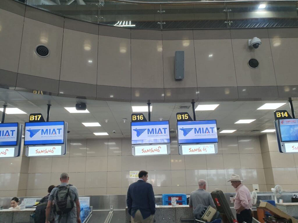 In both Busan and Seoul Incheon, MIAT Mongolian Airlines is handled by Korean Air owned handling company, Air Korea. Thus, at 1525, wearing Korean Air’s ground staff uniform arrived at the four check-in desks reserved for MIAT Mongolian Airlines’ early evening service and a small queue leading up to these could be seen. With the opening of these desks appearing imminent and not wanting to get left behind, I headed downstairs by which time the first passengers appeared to have been called forward to the desks. Interestingly, there were no separate desks for those flying in Business or for those who had checked-in online. However, seeing as I was not flying in Business and as the queue was relatively short, I could not make any complaints. As I slowly shuffled forward, I found myself standing behind a group of weary looking travellers from the United States who were armed with large trekking bags. Whilst the presence of such passengers was far from surprising given Mongolia’s status as a popular adventure holiday destination, I could not help but notice the luggage labels on their bags. These revealed that the passengers had flown with Japan Airlines from the United States to Tokyo Narita, connecting onwards to Busan where they had arrived that morning on one of the airline’s Boeing 737-800s. Whilst this is not the most indirect route, I couldn’t help but think that flying to Ulaanbaatar with Air China via Beijing or Korean Air via Seoul Incheon would have saved them the hassle of an extra stop. However, who knows, maybe they were aviation enthusiasts like me, eager to sample the delights of Mongolia’s national carrier.