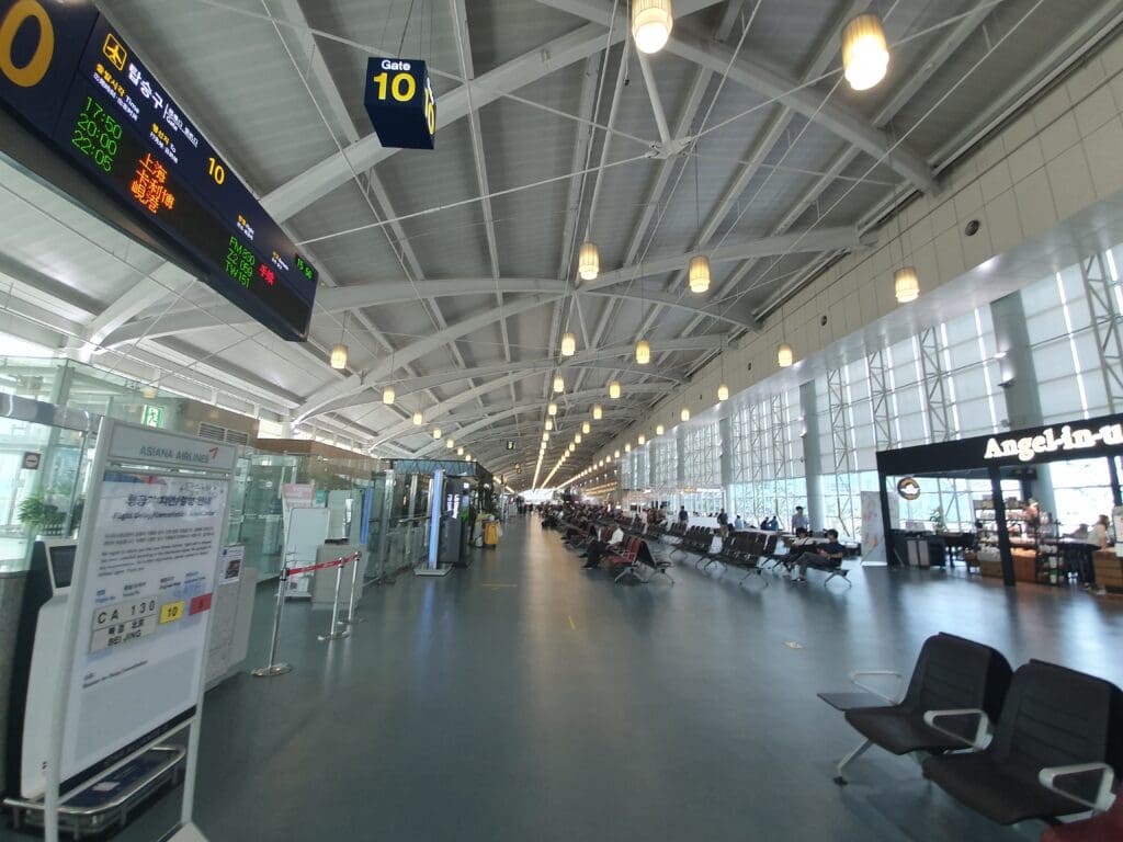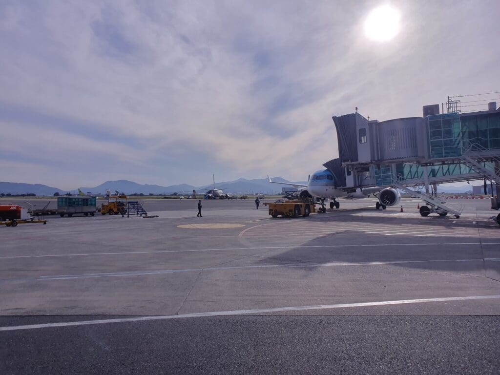 Before this trip, my one and only time departing from Busan Gimhae Airport’s international terminal had taken place in October 2014 when I departed on a Peach Airbus A320 bound for Osaka Kansai. Since then, the terminal had undergone significant expansion. That afternoon, I found this to be spacious and home to plenty of shops, cafés and restaurants for its size. Crucially, despite being a little busy, I found plenty of places to sit, plus those needing to power or charge their devices will be pleased to hear that a good number of plug and USB-A sockets could be spotted throughout the terminal. As I have found is usually the case at Korean airports, the terminal appeared to be spotlessly clean throughout. My only real complaint about the terminal was that thanks to multiple layers of glass, any decent photography of aircraft outside the terminal was a little difficult. However, this is only an issue for the relatively small number of aviation enthusiast passengers and I thus doubt that most who pass through the terminal will complain about this!