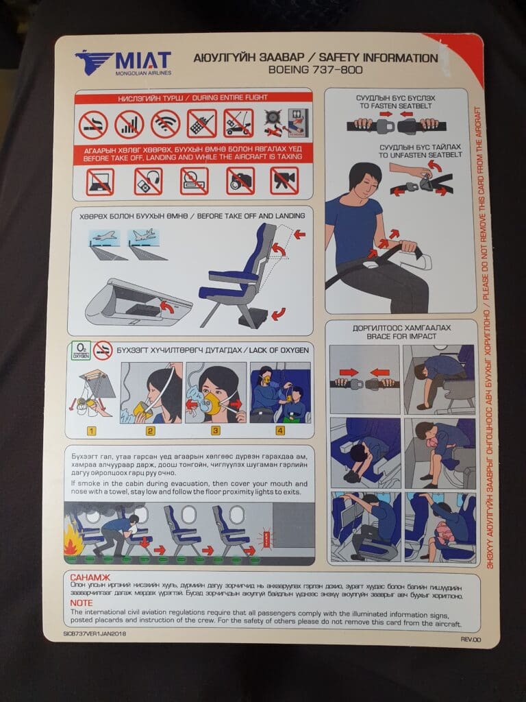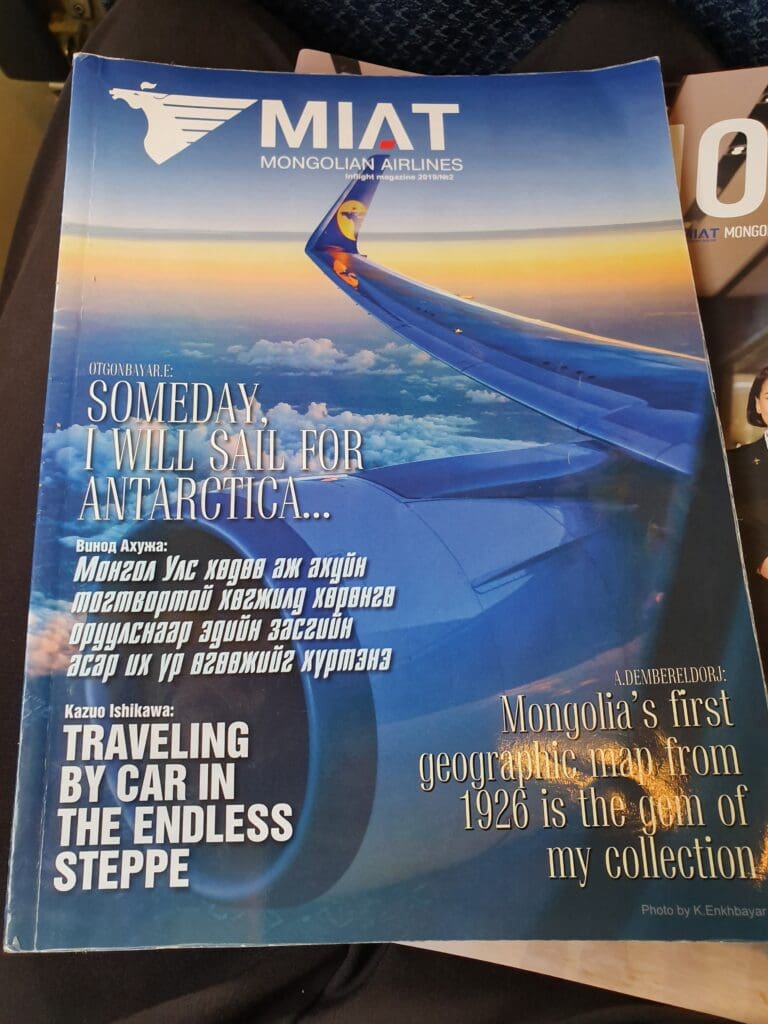 As the Boeing 737 crossed high above China’s northeast, thanks to the blanket of clouds below nothing could be seen of the region’s towns, cities and diverse landscapes. With little else to do, I decided to have a quick explore of the MIAT Mongolian Airlines provided entertainment onboard the flight. With no personal or overhead screens onboard this particular aircraft, this was limited to the airline’s quarterly inflight magazine. As is occasionally the case, I found this to be heavily laden with advertisements for a range of Mongolian businesses. With the services advertised ranging from newly constructed housing estates to questionable karaoke bars. Focusing on the magazine’s articles, these were plentiful yet ultimately lacked much diversity, virtually all of which consisted of interview style pieces with a range of characters – artists, celebrities and entrepreneurs. Perhaps slightly more of interest to aviation enthusiasts was the airline and fleet information pages at the rear of the magazine. Finally, it is worth mentioning that almost all articles appeared to be in both Mongolian and English. However, articles or information in any other language were completely absent from this publication.