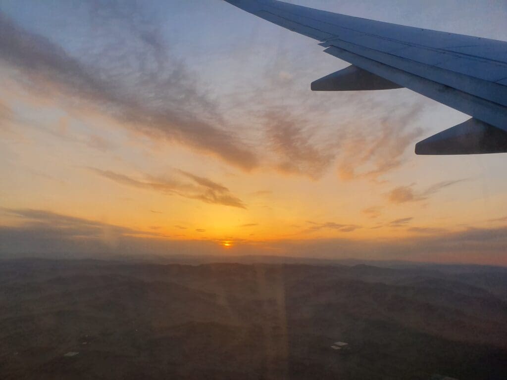Not too long after the flaps and gear were extended, Ulaanbaatar appeared in the distance as did several residential and industrial areas before the aircraft crossed over the Tuul River. Moments later at 2052, the aircraft darted over the perimeter fence at which point an unexpected visitor could be spotted, a US Air Force Boeing C-17 Globemaster III. 3H37 after departing Busan, the aircraft made a gentle touchdown at which point another even more unexpected visitor appeared, a USAF Boeing C-40B sporting the blue, white and gold ‘Air Force One’ colours. Meanwhile, more expected yet equally rare (for me) aircraft could be seen in the form of one of Hunnu Air’s recently delivered Embraer 190s alongside a Boeing 737-700 operated by the reincarnated Eznis Airways. As we gently decelerated, the airport’s small aircraft graveyard came into view which featured former MIAT Antonov 24s, ex-Aero Mongolia and Hunnu Air Fokker 50s, a single LET 410 and some abandoned Soviet built helicopters. Eventually, the Boeing 737 taxied off the runway and made its way towards the empty terminal whilst a superb sunset filled the skies in the background. After the usual post-arrival announcement was made in Mongolian and English by the Purser, the aircraft reached the apron and slowly pulled into Gate 1.