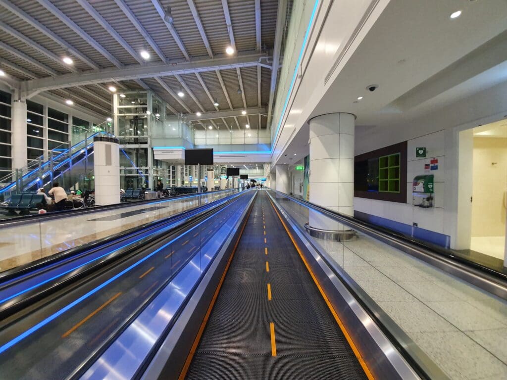 Following a brisk walk, I arrived at the terminal’s immigration area. Despite being busy, as is usually the case at Dubai International Airport, most immigration booths were open and so the queue shuffled along at a fair pace. After no more than five minutes of waiting I handed my passport over to the immigration official and after some scanning, clicking and the usual suspicious glances, my passport was stamped and returned and I was free to head onwards to the security area located right after this. With immigration serving to slow the rate of flow of passengers and seeing as the majority of security checkpoints were open, I was able to walk straight up to one of these where I was met with the usual questions regarding liquids and electronics. After a quick check, I was allowed to head up the escalators towards the station from where all passengers must catch the automated train that leads to the separate building where the terminal’s gates are located.