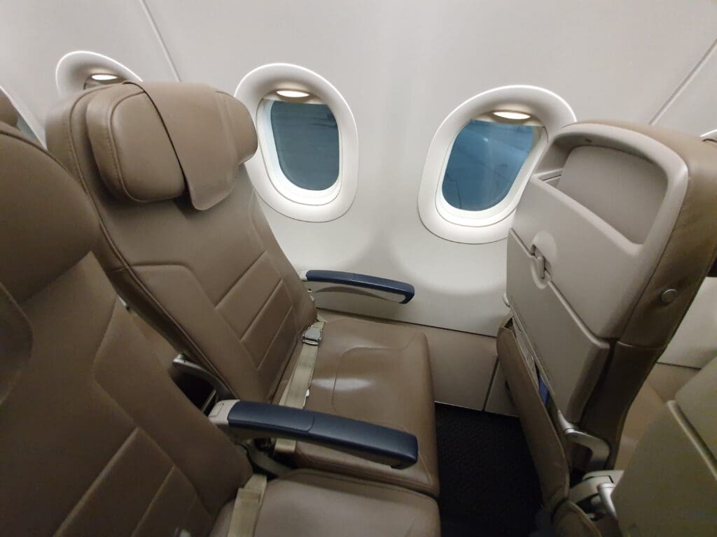 As I passed through this small cabin I received another warm greeting from another of the four flight attendants before I arrived in the Guest Class section of the aircraft. Running from Row 30 to Row 51, this section of the aircraft is home to 132 Rockwell Collins Pinnacle seats. Onboard, each of these seats is covered in a smart-looking beige faux leather and features a movable headrest covered by a matching beige headrest cover.