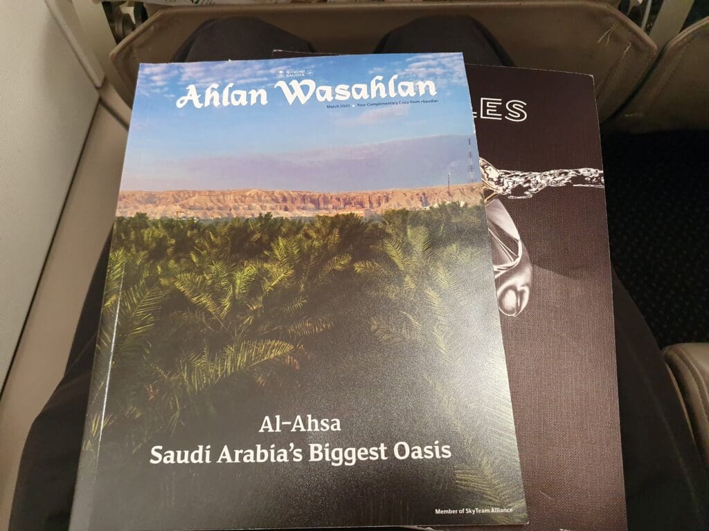 Given the slightly lacking inflight entertainment streaming option, I decided to turn to the March 2020 edition of Saudia’s Ahlan Wasahlan inflight magazine – which, unlike the rest of the aircraft, seemed to be in a crisp and pristine state as if this had only just been placed into the seatback pocket. As one would expect, this features both an Arabic and English section, with the latter being somewhat smaller and occupying around a third of the magazine. Unfortunately unable to read Arabic, I confined myself to the English language section which contained in-depth travel articles on the largest oasis in the world at Al-Ahsa, around three hundred kilometres from Riyadh, and Dublin. Whilst the latter may not be served by Saudia, the Irish capital is easily reached from both Heathrow, Manchester and the airline’s other European destinations. However, the optimistic enthusiast in me would suggest that this could hint at a new route. Aside from this, the magazine also featured an article entitled ‘A Corporate Government Paradigm Shift’ which was sponsored by the INSEAD Business School and written by its director. However, not wishing to fall asleep, I skipped past this and instead turned to the Saudia and Skyteam news which, amongst other articles, featured a proud piece on the airline’s new cabin crew uniforms which are to be rolled out initially on flights to Heathrow and Paris CDG. Finally, it is worth mentioning that the magazine did not appear to be nearly as advert-heavy as that of many other airlines, with only a limited number of adverts, all of which seemed to be either for Saudia or Skyteam.