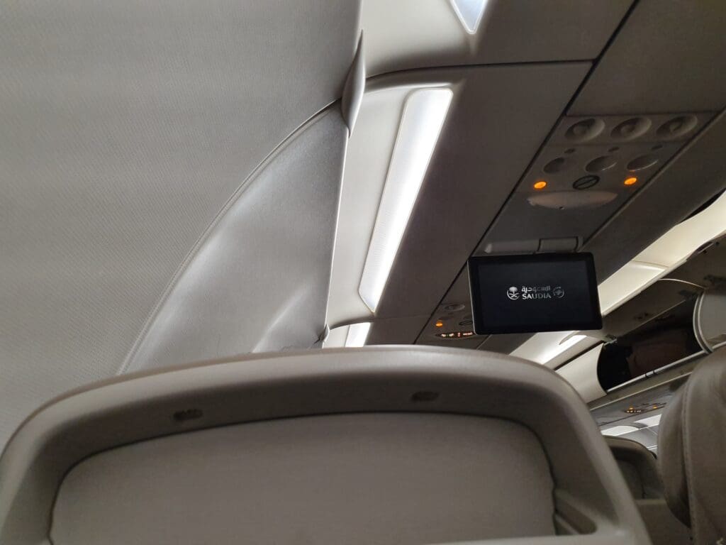 With 20 minutes to go until the flight’s scheduled departure time and still enjoying the luxury of two vacant seats next to mine, at this time I was delighted to hear boarding announced as complete. Unsurprisingly given the then newly introduced regulations attempting to limit the spread of Coronavirus in Saudi Arabia, the flight was very much empty with no more than a third of the seats in the Guest Class ending up filled. When it came to the flight’s demographics, the majority of passengers appeared to hail from Saudi Arabia and whilst a few families were present, most were flying alone. That said, I did notice several passengers from India alongside a British family who appeared to reside in the Kingdom. Turning to the cabin crew, this was a fairly young team consisting of two males from Saudi Arabia and two females from the Philippines, with only the Purser working in Business that morning.