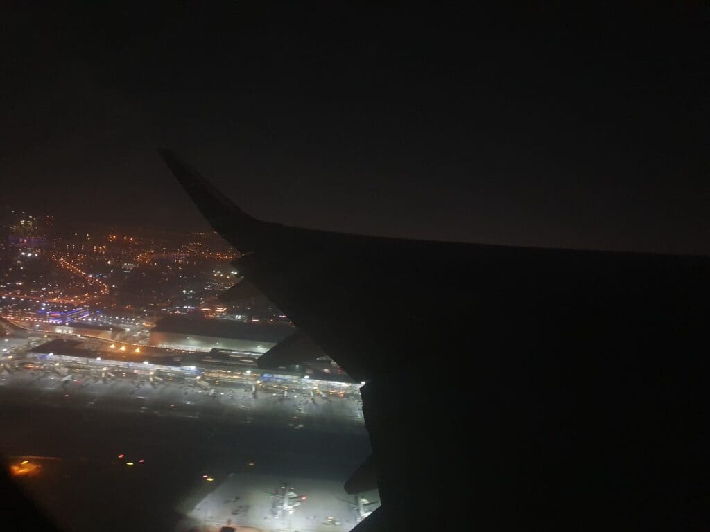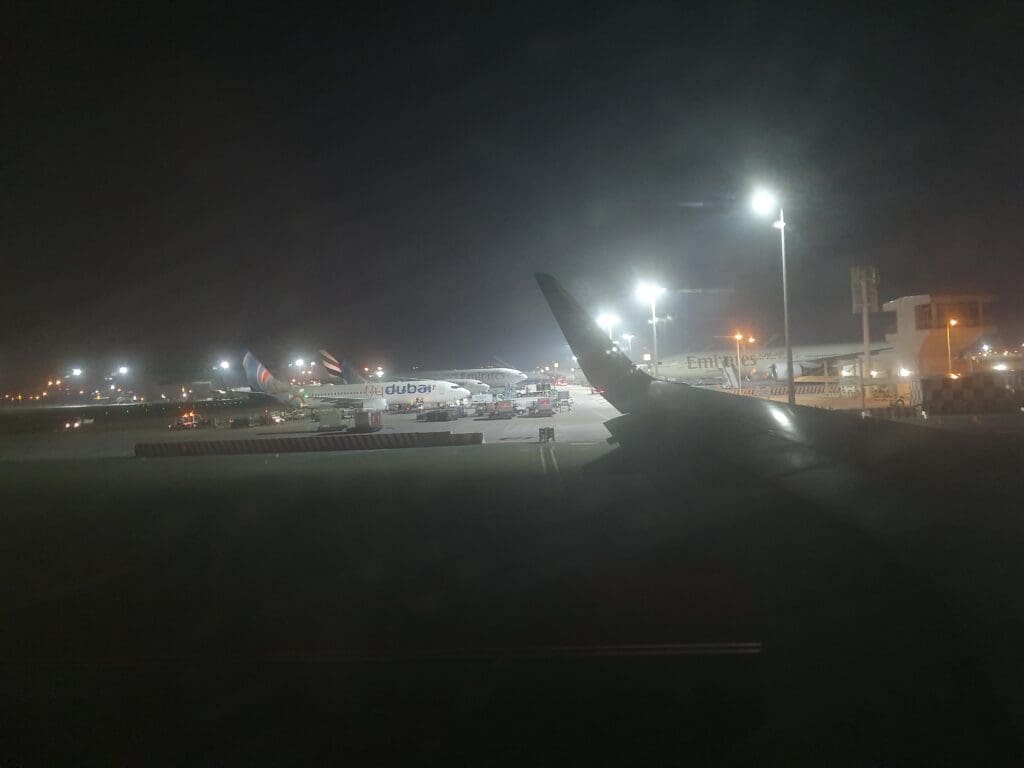 As the English language version of this commenced, the pushback of the Airbus A320 could be felt commencing with a jolt a whole five minutes before the flight’s scheduled departure time. As we travelled backwards, the cabin was filled with the squeaky sound synonymous with the Airbus A320 Family before the two CFM56 engines vibrated quietly into life. Once the safety video ended, an Islamic Dua played on the overhead screens complete with English subtitles. This was then followed by a two-minute video highlighting the latest content featured on the airline’s entertainment system before the screens were retracted and lights dimmed in preparation for our departure. By this time, the aircraft had already commenced its long taxi to the end of Runway 30R. Seeing as I was sitting on the left hand side of the aircraft, as we made our way to the runway I was treated to views of a trio of aircraft departing into the night sky – a pair of Emirates Boeing 777-300ERs and a single FlyDubai Boeing 737-800. Meanwhile, in the distance, a couple of fairly rare aircraft (in my opinion) could be spotted amongst the masses of FlyDubai jets. These took the form of a vintage Ariana Afghan Airlines Boeing 737-400 and a reasonably new Nepal Airlines Airbus A320.