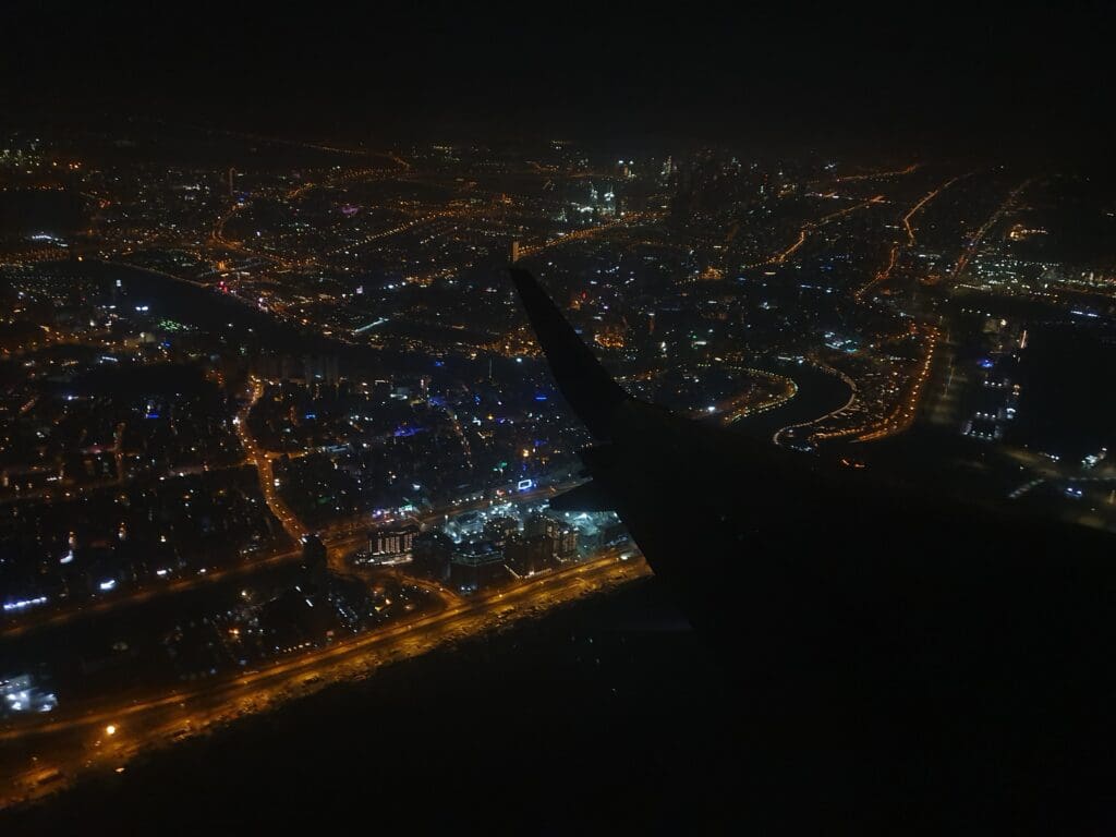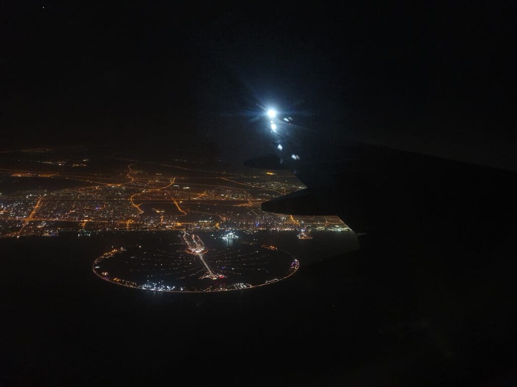 Twelve minutes after the aircraft had commenced its taxi, at 0432 the instruction was given for the crew to take their seats although immediately after this was made, the aircraft taxied straight onto the runway where it performed a rolling takeoff. As one would expect given the light load, the takeoff was powerful and we rotated up into the skies in no time at all allowing for good views of both Terminal 1 and Terminal 3 as we headed towards the coast. Whilst by day this departure would have allowed for superb views of the Burj Khalifa and its surrounding skyscrapers in the distance, as the fact that the display lights of these were dimmed, these buildings could only just be made out as we headed up into the sky. A few moments after leaving the airport’s perimeter, the lights of Deira and Dubai Creek popped into view as the aircraft banked before rolling out and flying parallel to Dubai’s coastline. As we flew along the coast, slightly better views could be had of the Burj Khalifa after which the famous Burj Al Arab and the outline of the Palm Khalifa could be seen. From there the aircraft headed past Jumeira Beach and the Marina and then on to Jebel Ali before turning inland and flying along the E11 road towards Abu Dhabi.