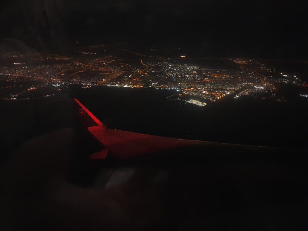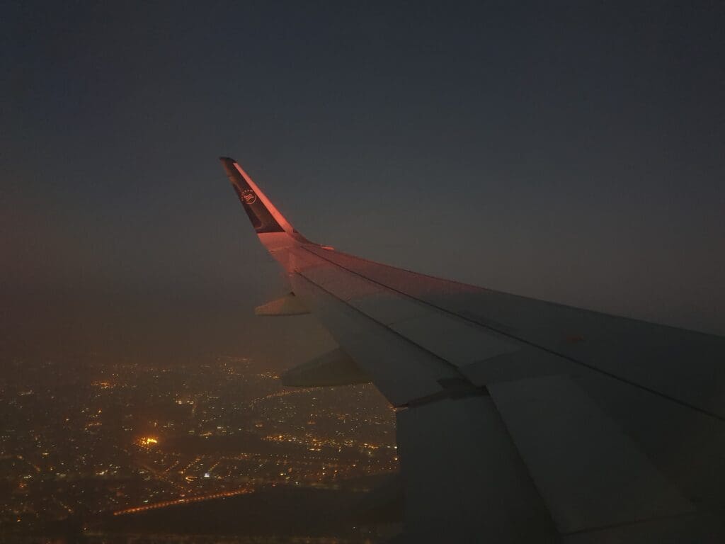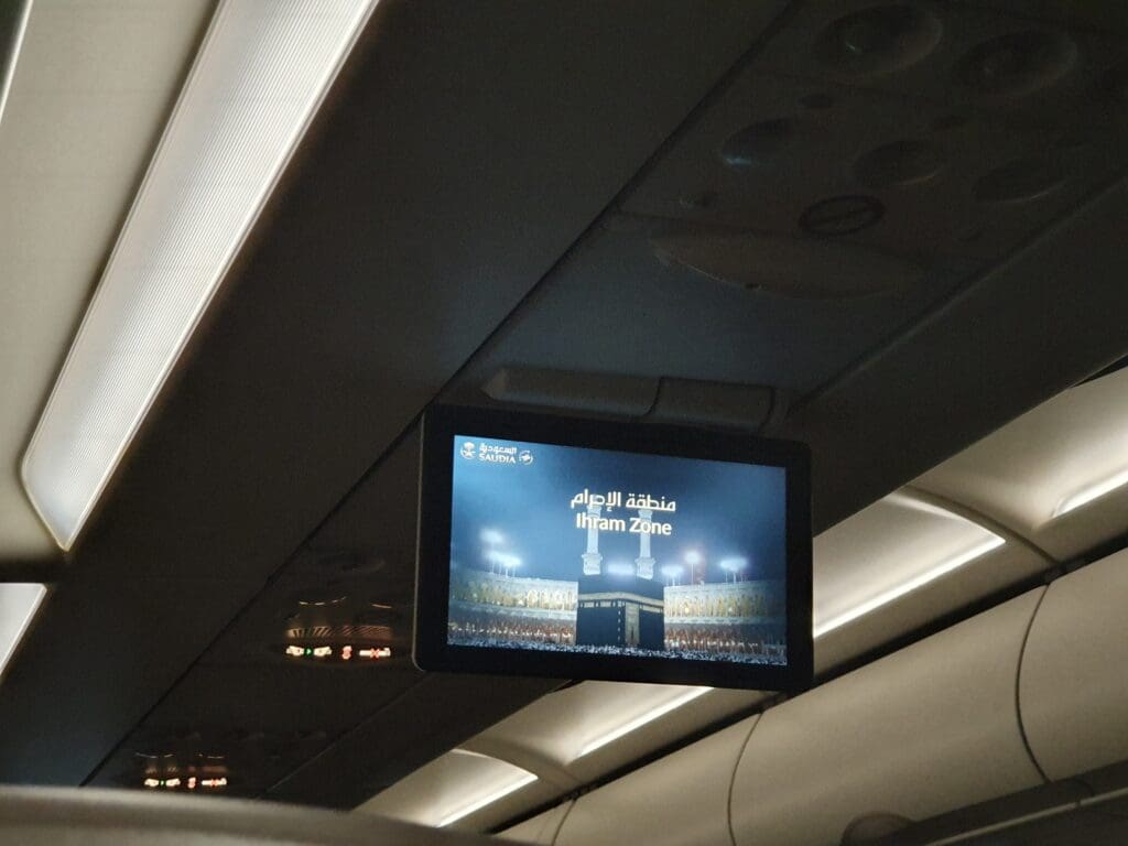 A few minutes after returning to my seat, outside the orange glow of that day’s sunrise appeared on the horizon although unfortunately, the streak-filled windows prevented any decent photos of this as we cruised towards the end of the flight. After crossing over the Saja and Umm Al Ramth Wildlife Sanctuary located just over halfway between Riyadh and Mecca, at 0545 local time, the Airbus A320 could be felt commencing the initial stages of the descent. This sinking did not last too long however as we soon levelled off at 32,000 feet, flying at this altitude for several minutes. As the skies slowly began to brighten, the aircraft continued its descent and at 0600 the seatbelt signs were re-illuminated as we passed down through 20,000 feet. Having hoped for decent views of the region’s mountains as the aircraft neared Jeddah, unfortunately, the lack of light combined with the haze ensured that only the peaks of a few of these were visible and no good photos could be taken. Shortly after the seatbelt signs were re-illuminated, the cabin lights were switched on again allowing the crew to conduct their final checks. Interestingly, as the aircraft neared Mecca, the moving map became temporarily locked on a screen which displayed the Kaaba inside the Great Mosque of Mecca with the words ‘Ihram Zone’. Several minutes later, in place of the usual pre-arrival announcement a video played in Arabic and English asking for all passengers to fasten their seatbelts, ensure their window shades are up, tray tables stowed and seatbacks are in the upright position in preparation for the aircraft’s arrival. Once this came to an end, the screen reverted to the moving map channel which revealed we were very near Jeddah.