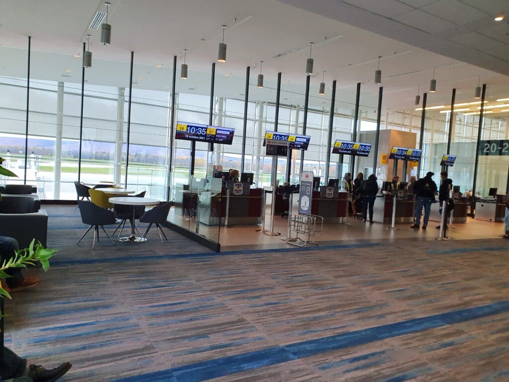 As with the landside area of the airport, the terminal’s large airside area is bright, open, modern and spacious with an abundance of seating – many of which feature built-in plug sockets and USB-A ports allowing passengers to charge their devices whilst waiting for their flights. As many passengers expect in 2021, fast complimentary wifi is offered which I found to work well throughout the terminal for the duration of my stay. In terms of facilities, this terminal is home to several cafes and restaurants, shops and a bureau de change. However, that morning only a single café-bar as well as the local branch of Relay appeared to be open. Aviation enthusiasts will be glad to hear that the terminal offers good vistas of the airport’s two runways as well as gates outside, with many of the terminal’s seating areas serving to be well positioned to allow for the comfortable and easy observation of any movements outside.