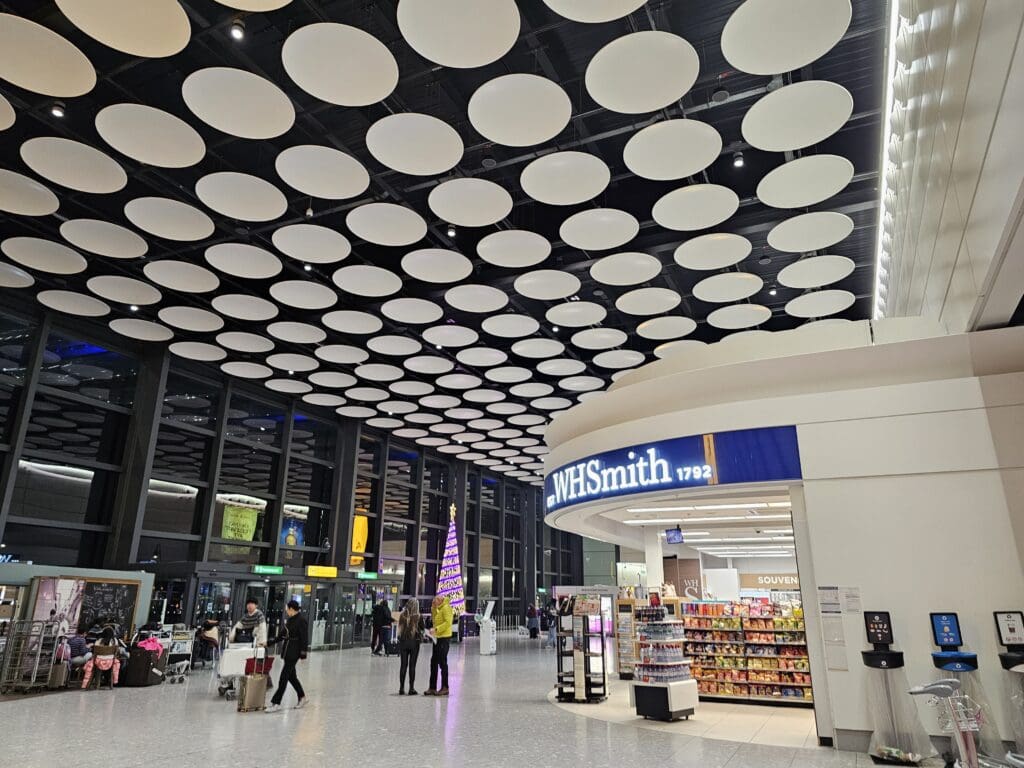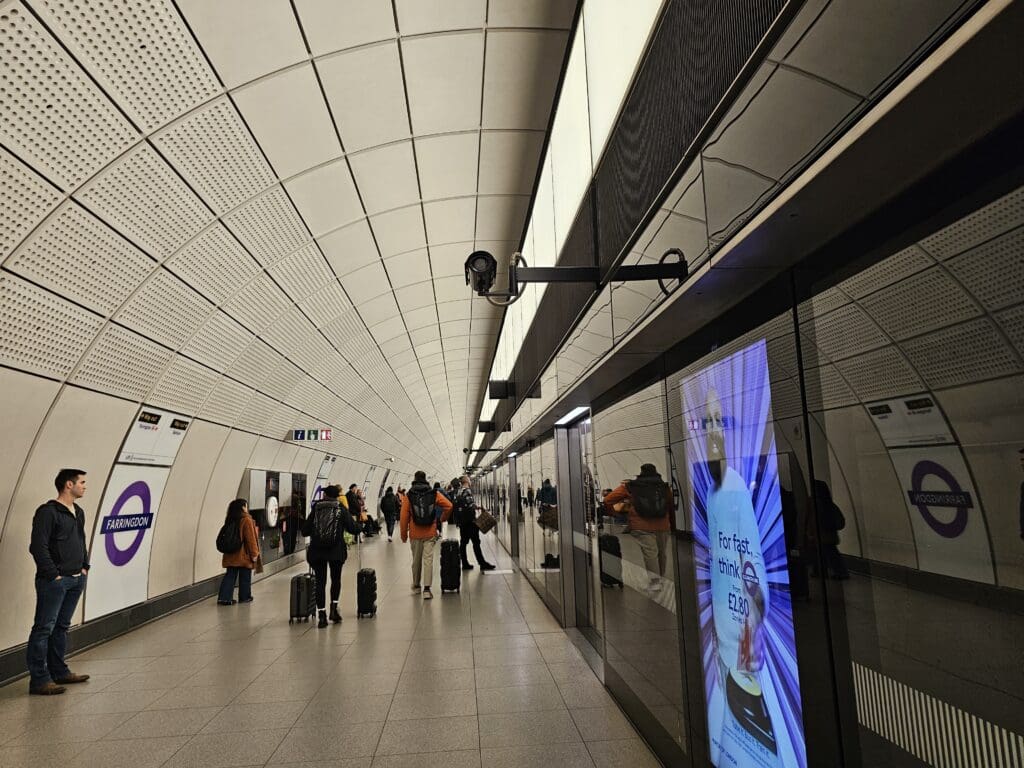 Once in the capital city, I had a fair number of options to reach Heathrow Airport. From St Pancras Station, the most direct means of reaching Heathrow involves taking the London Underground’s Piccadilly Line. This trundles deep beneath London before emerging in the open air at Hammersmith and makes plenty of stops as it winds its way westwards through the capital. However travelling with a large suitcase during the afternoon rush, I decided against this and went for a quicker option albeit with more changes. From the East Midlands Railway platforms, I descended down to the basement and caught a Thameslink train one stop southwards to Farringdon. From there, I continued heading downwards until I arrived at the modern platforms of the Elizabeth Line where I intended to catch a train straight to Terminal 4. However, having just missed a service, for old time’s sake I instead took another westbound Elizabeth Line train to Ealing Broadway where I had previously lived, preferring to wait there in the open air rather than deep underground at Farringdon. Packed in like sardines as we sped deep beneath the streets of London during rush hour with coughs and sniffles aplenty, I was reminded of just why I had moved back up North after several years of working and studying in the capital! Fortunately, the journey went without a glitch and I soon arrived at Ealing Broadway where I had a ten-minute wait until the next Heathrow-bound train.