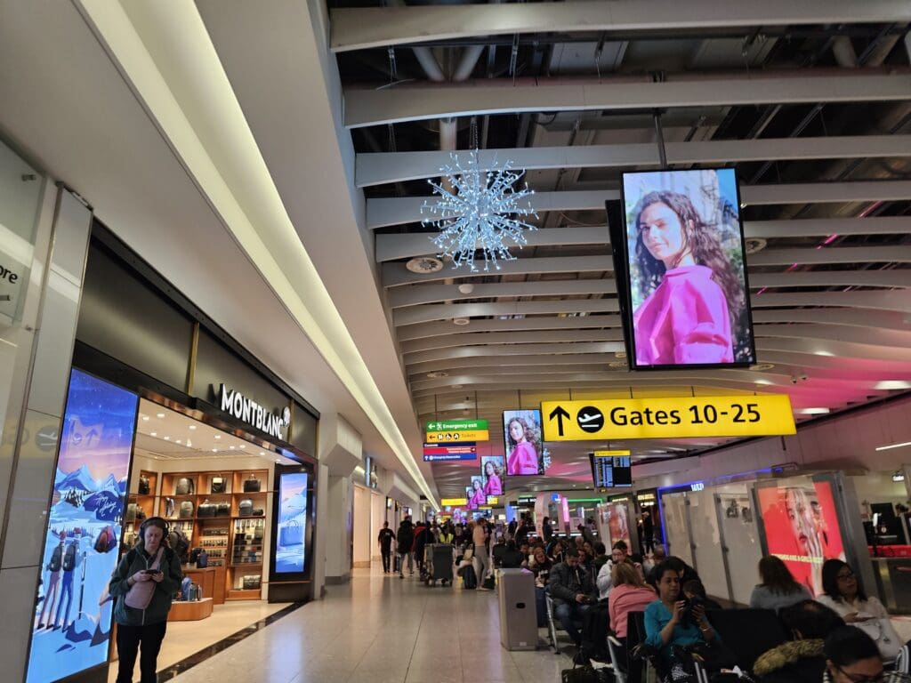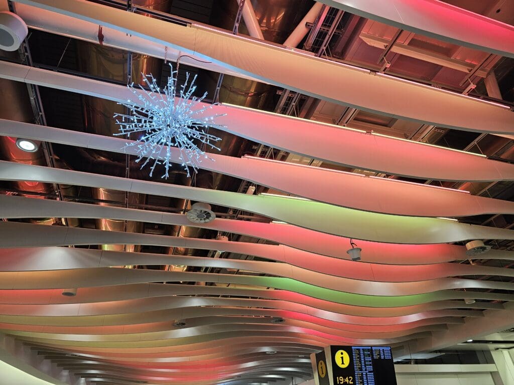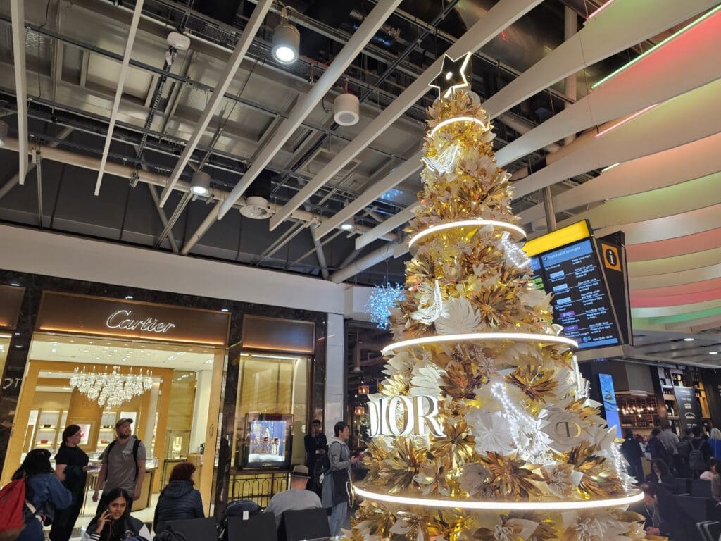 Unlike many European airport terminals, Terminal 4 is designed in a way that passengers are not required to pass through the terminal’s duty free area. However, those looking to partake in some retail therapy ought not to fret, as the entrance to this is difficult to miss, being located directly opposite the security area. Being Christmas, expectedly, this was blasting Christmas pop, and as a former retail worker, I could not help but feel sorry for the staff who would have likely had to listen to this soundtrack on repeat for weeks on end! On the subject of Christmas, plenty of decorations could be seen throughout the terminal including a fair number of Christmas trees and nice lighting, giving this an appropriately festive feel.