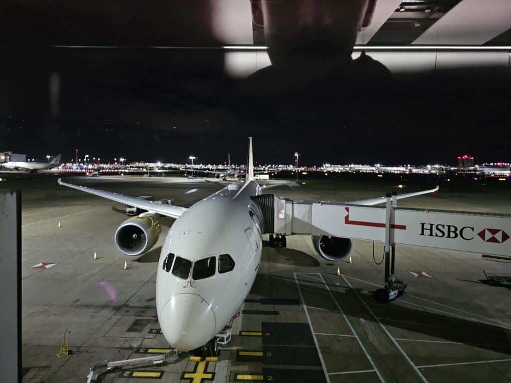 At present, Terminal 4 serves many of Heathrow Airport’s SkyTeam member carriers and non-allianced airlines. That evening, flights would be departing to destinations both near and far, with services to Amsterdam, Bahrain, Beijing, Dhaka, Doha, Guangzhou, Kuala Lumpur, Muscat, Paris CDG, Rome Fiumicino, Seoul Incheon, Shanghai Pudong, Sofia, Tunis and Valetta. These were operated by Etihad Airways, KLM, China Southern Airlines, Biman Bangladesh Airlines, Qatar Airways, Malaysia Airlines, Oman Air, Air France, ITA Airways, Korean Air, China Eastern, Bulgaria Air, Tunisair and Air Malta respectively, with types ranging in size from the Airbus A220 right up to the Airbus A380. In addition, one of the world’s most luxurious private jets, the Sultan of Brunei’s Boeing 747-8 could be seen parked at a remote stand a short distance away!