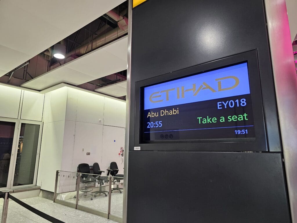 Seeing as I had already selected a seat online and would need to visit a check-in desk to drop off my bag, I decided to delay check-in until I reached the airport. Surprisingly, this worked in my favour as the queues for airport check-in ended up being shorter than those for the bag drop. After a few minutes of waiting, I was shown towards desk, where, in the usual manner, I handed over my passport and was asked for my final destination. For whatever reason, that evening my ticket seemed to cause some confusion with the Dnata agent, who ended up beckoning their supervisor. Fortunately, after a few clicks and some typing later, my boarding pass was printed off and I was told to be at the gate for 2000. Ending up with the sequence number 436, I suspected that I was in for a packed ride over to Abu Dhabi that evening. However, travelling just before Christmas, this was hardly surprising.