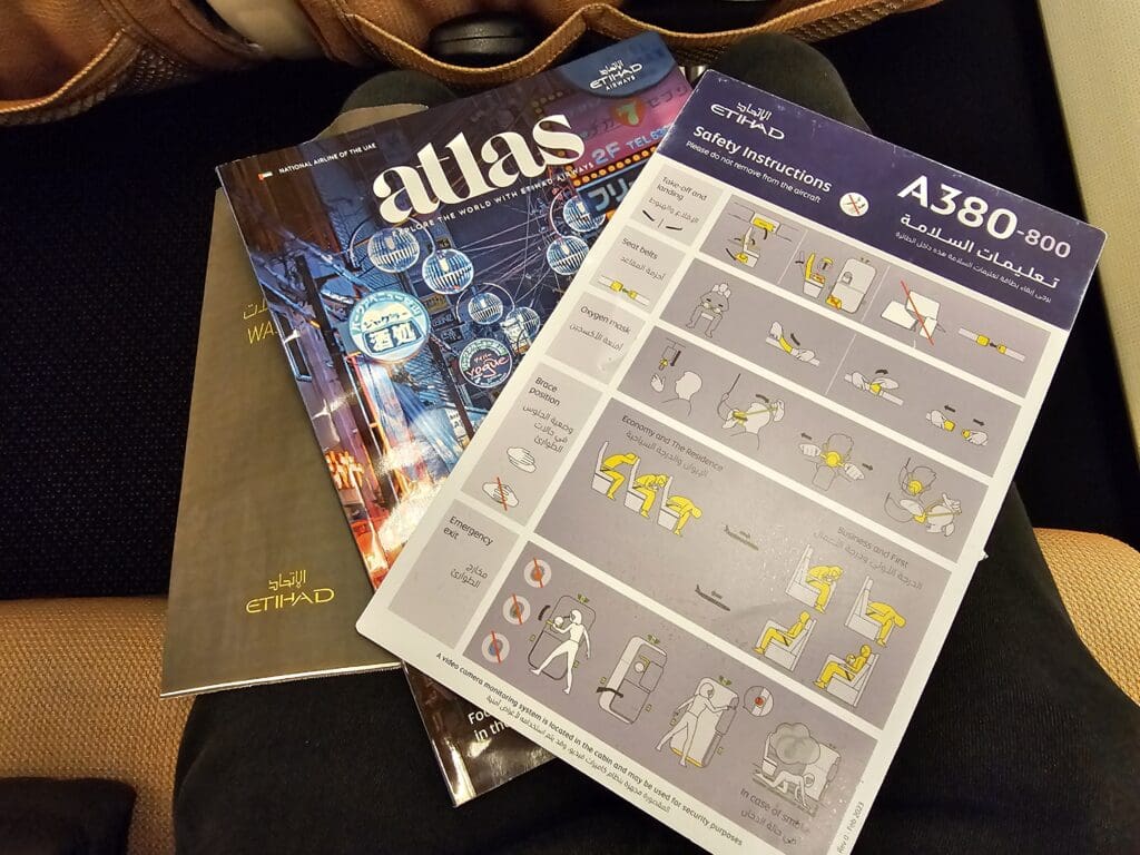 In addition to its E-Box inflight entertainment system, Etihad Airways also offers wifi, or Wi-Fly as they call it. Those who are members of the Etihad Guest loyalty program are provided with free messaging services which I found to work well for most of the flight. Meanwhile, those needing to stay connected to the world could part with $9.99 (or 1200 Etihad Guest miles) to use the internet for the duration of the flight. Meanwhile, all passengers could use the Wi-Fly network to read the latest news, see information about the flight, discover more about Abu Dhabi and the airline, or browse a selection of eighteen magazines on the E-library. Overall, I found the entertainment offered and the additional features of the system to be fantastic, so top marks to Etihad Airways in this regard! Last but not least, that month’s edition of the Atlas magazine seemed to be of decent quality, offering a selection of articles in both Arabic and English on a selection of items, albeit with the usual smorgasbord of advertisements peppered throughout.