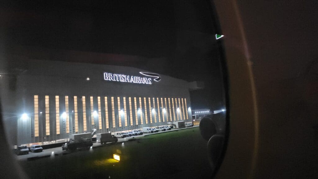 After a few minutes, the tug was disconnected and with all four engines having spooled up, the flaps could be heard whining into position in preparation for our departure. That evening, Runway 27R was in use for all departing aircraft and so after leaving Terminal 4 behind, the aircraft darted over Runway 27L in between arriving aircraft and cautiously made its way over to the runway. Sitting on the right-hand side of the aircraft, during this journey, I was treated to views of British Airways and Virgin Atlantic’s maintenance hangars, although unusually, few aircraft could be seen there. Not too long after we left the terminal behind, the Airbus came to a halt as it joined the take-off queue. Whilst waiting, a total of five Airbus A320s rocketed off ahead of us in addition to the two-hour delayed Etihad Airways Boeing 787-9 Dreamliner that was of course also bound for Abu Dhabi.