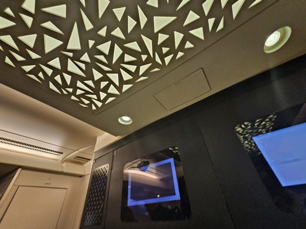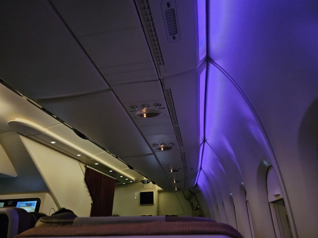 Soon, I returned to my seat, plonked myself down and settled in for the overnight journey ahead. Once there, my first impressions of the seat and the area around this were very good. Firstly, the seat was spacious, soft and comfortable, whilst this was spotlessly clean and I failed to spot any notable signs of wear and tear. Seeing as I am not a particularly frequent Airbus A380 passenger, with this being my first ride on the type since flying onboard a British Airways Airbus A380 from London Heathrow to Frankfurt back in 2021, I had forgotten just how high the type’s passenger service units are compared to other aircraft types, as well as the noticeable gap between the inner and outer window panes which can make photography on the Airbus A380 a little challenging.