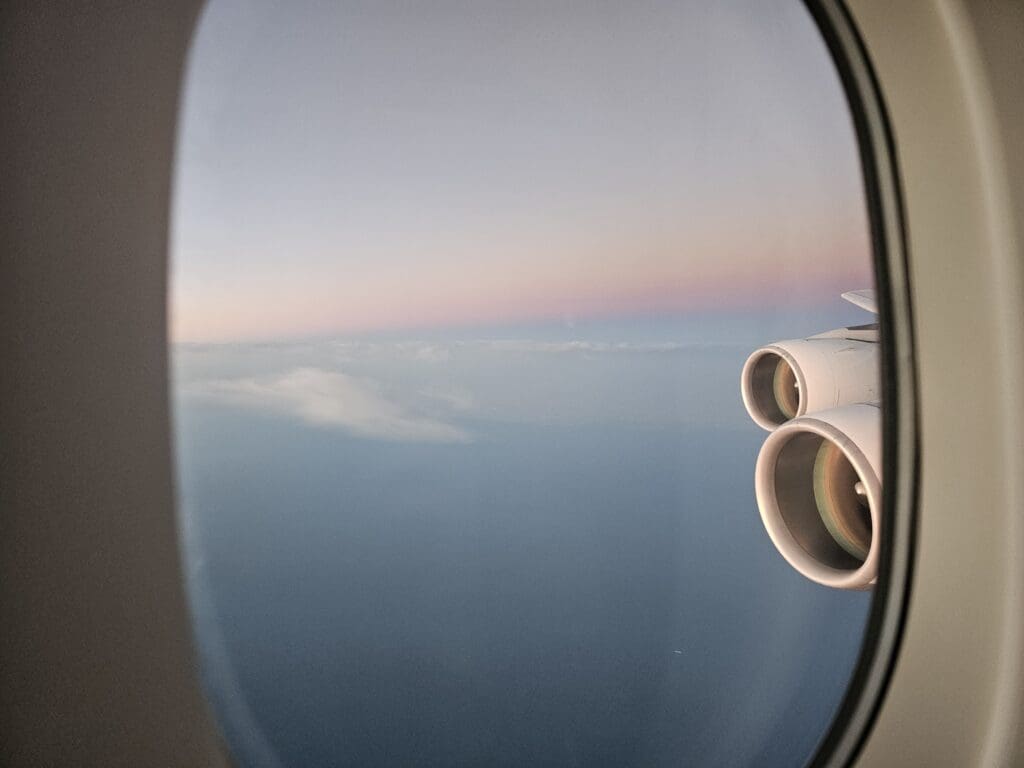 After almost an hour and a half in the skies of Turkey, passing from its northwest to southeastern corner, the aircraft made its way into the skies of Iraqi Kurdistan. Looking outside, it wasn’t long before the bright lights of the region’s capital, Erbil, appeared below. Up above, an impressive array of bright stars could be seen whilst lower down, for the entire time we were in Iraqi airspace, the lights of aircraft were easily spotted heading in both the same and opposite directions, highlighting the busyness of this patch of sky. Whilst I did not count the number of aircraft that I spotted, I suspect that I saw at least thirty passing aircraft in the skies over Iraq that night, of these, most were trundling between Europe and the Gulf States.