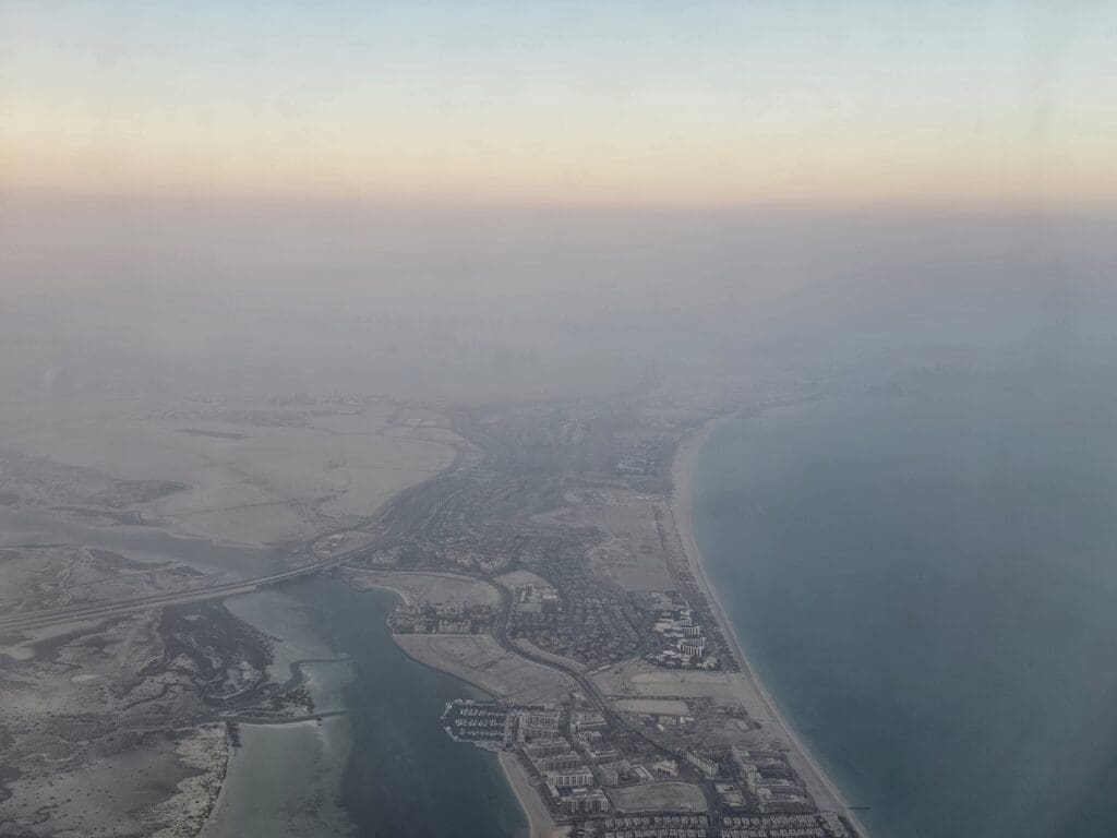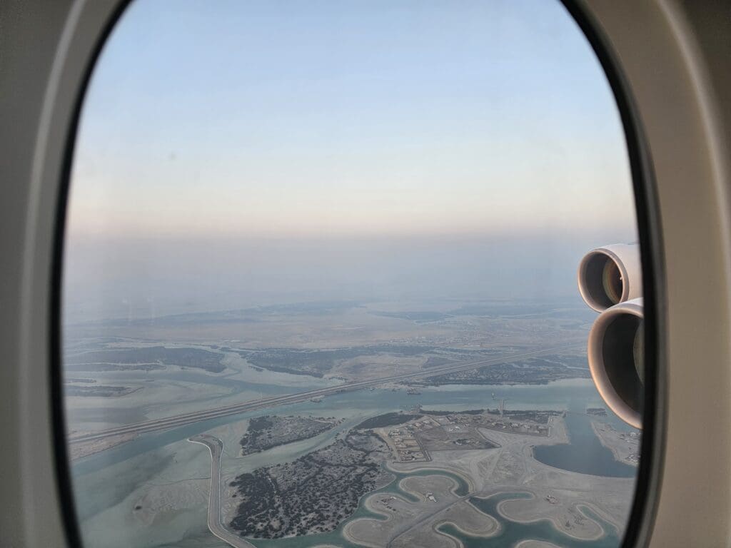 Upon reaching the northern tip of Qatar, the shoreline of the country’s Madinat ash Shamal province appeared at which point the Captain’s voice filled the cabin as they performed another short announcement. During this, the Captain thanked passengers for flying with Etihad Airways and informed us all that we would shortly be commencing our descent into Abu Dhabi, ending this by providing an update on the weather on the ground.