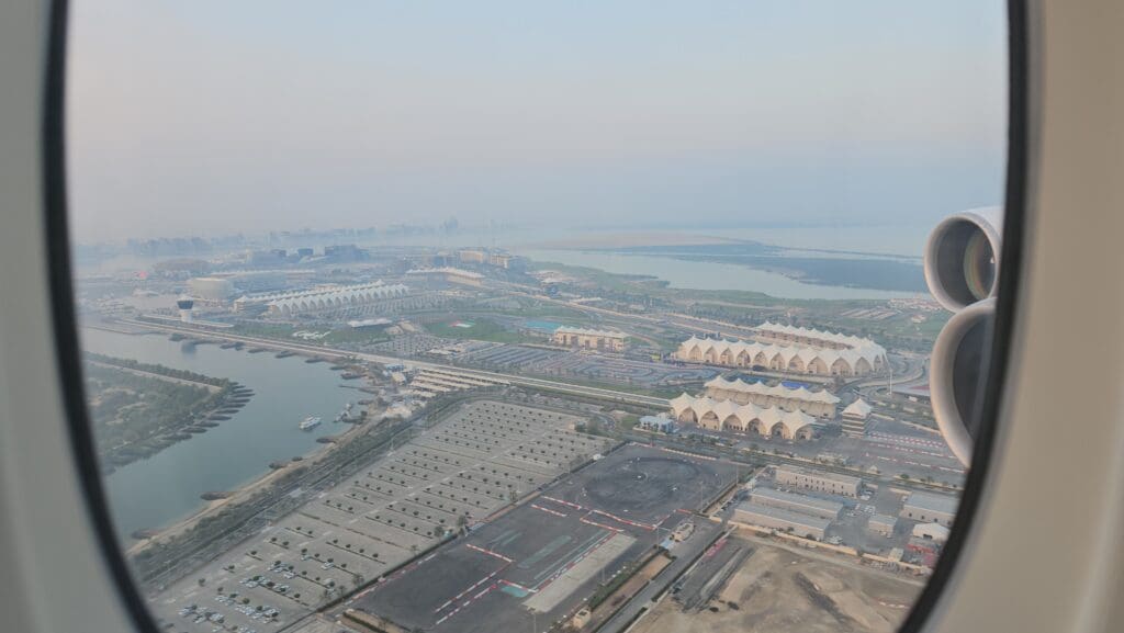 As we sank downwards, suffering from a light cold and unable to clear my ears, unfortunately, I was soon hit by a wall of pain so the descent was somewhat of a blur and I simply wanted to get down and on the ground as soon as possible! However, I did manage to spot the island of Zirku and its airport – part of the Emirate of Abu Dhabi, this is primarily a site for oil refining and is connected to the mainland by Abu Dhabi Aviation’s Dash 8 operated services for oil workers.