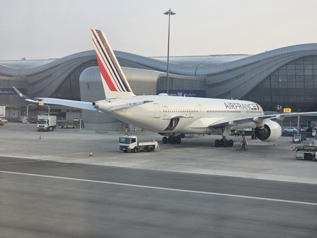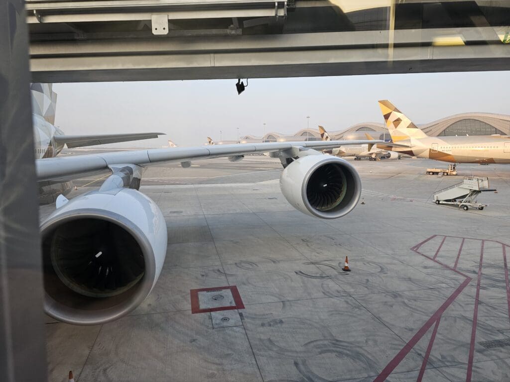 With some slight turbulence, as we descended downwards towards the sandy landscape below, the whale sank over the perimeter fence and touched down at 0724 after a grand total of just 5H53 spent in the skies of Europe and the Middle East. Almost immediately after touching down, Abu Dhabi Airport’s shiny new terminal appeared where plenty of mostly Etihad Airways aircraft could be seen waiting to head off on their next missions to destinations both near and far.