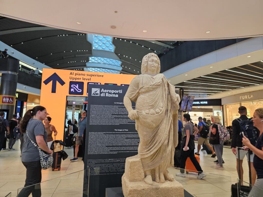 Once inside Terminal 1, I followed signs for the E-gates (all of Terminal 3 gates start with the E) and made a leisurely Saturday morning stroll through the terminal. At that time, the airport was packed with crowds of passengers scurrying about here, there and everywhere. However, aside from this, Rome Fiumicino left me with little to complain about. Having undergone plenty of renovation work, I found the terminal to be bright, airy and modern and was home to a few interesting sights. For example, professional and armchair ancient history buffs alike ought to spend some time wandering along the airport’s Images of Time exhibition route, which takes passengers around six ancient Roman artefacts. Whilst not having enough time to do the full trail, I did stumble into a statue of the Roman god of the seasons, Vertumnus, which dates back to the third century AD. In addition, plenty of pianos were available for budding passengers to either annoy or entertain their fellow passengers, and I also spotted what seemed to be an airport radio station studio although this was empty at that time.