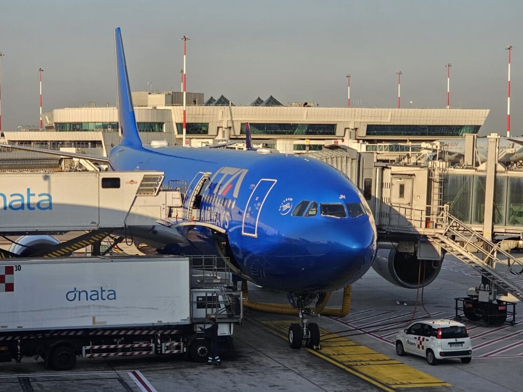 As we passed Terminal 1, I was given one last view of the sea of blue ITA Airways Airbuses waiting there for their next trips. From there, the aircraft came to a halt before slowly edging forward at a snail’s pace as a selection of aircraft overtook us. Finally, over thirty minutes after leaving the stand, at 1057 the Boeing slowly lumbered onto the runway. Following a short pause, the two engines roared into life, and the aircraft performed its powerful yet long take-off roll, eventually rotating upwards into the Italian skies.