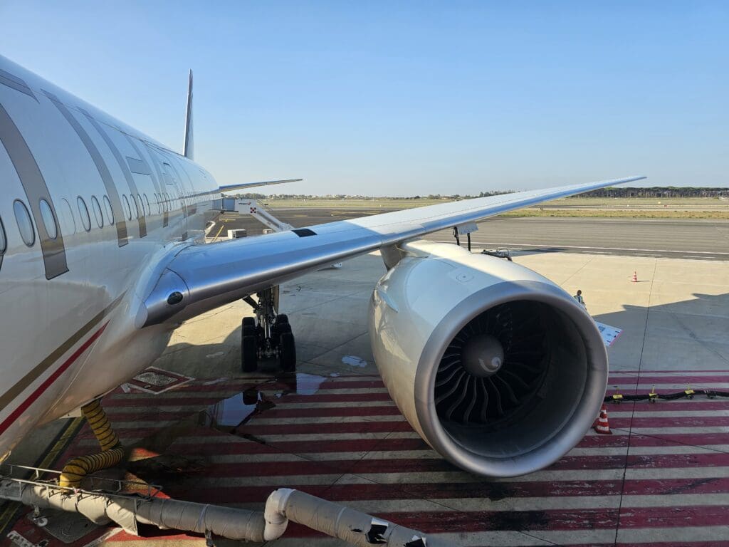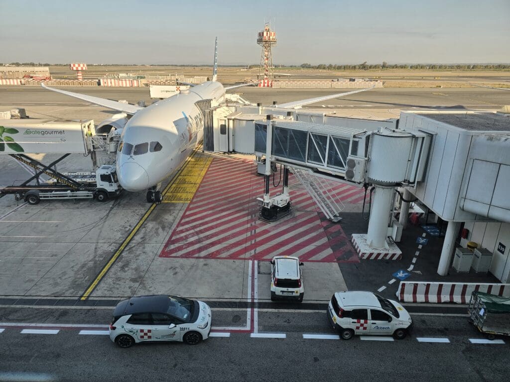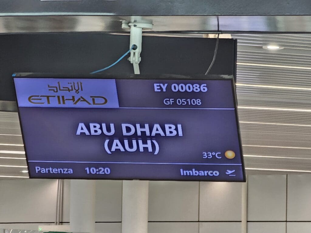 On the morning of my trek, I touched down in Rome bright and early, bringing an end to my second-ever flight with ITA Airways. Unfortunately, this experience left me lacking a great number of praises for Italy’s national carrier. Whilst the aircraft sported ITA Airways’ new(ish) distinctive bright blue livery, inside, I found the cabin to be battered and cramped. Furthermore, the crew seemed to be very snappy in their interactions with passengers. However, going some way to partially redeem themselves, we touched down in Rome on time, which was of course, of high importance given my onward flight to Abu Dhabi. Having been shuttled from a remote stand, I made it to the terminal with a little over two hours to go until the scheduled departure time of my flight to Abu Dhabi. By this time, given my virtually sleepless night wandering the halls of Barcelona Airport, I was akin to a zombie and simply wished for a hassle-free journey through Rome Fiumicino.