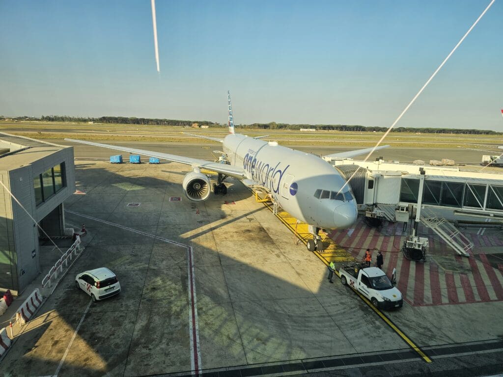 After strolling around the small terminal, I took my seat, charged my phone and looked out as a series of narrowbody jets rocketed up from Rome Fiumicino’s Runway 25. As expected, at 0900 the departure boards updated and advised that the flight would depart from Gate E34, and so at this time, I wandered over to this gate. Upon my arrival, I found the area around this to be rather busy, although this was explained by the fact that Qatar Airways’ Airbus A350 service to Doha was boarding at the neighbouring gate. Outside, the Boeing 777-3FX(ER) that would be taking us to Abu Dhabi could be seen being readied in the Italian sunshine at Stand 703. This particular Boeing took the form of A6-ETQ, which coincidentally, was the same aircraft I had flown nine years prior from Manchester to Abu Dhabi in August 2014. Interestingly, whilst Etihad Airways launched its refreshed brand identity in Autumn 2014, this aircraft is one of the few in the carrier’s fleet yet to be repainted into the ‘new’ livery.