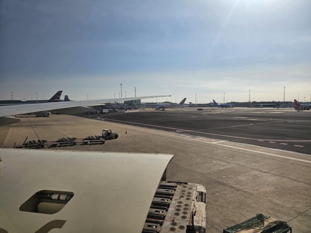 Unless you are an aviation enthusiast who is content with staring at the comings and goings of aircraft, I would not recommend arriving at the satellite terminal with heaps of time until your flight. Compared to the main portion of the terminal, this is somewhat more dated, and cramped and is rather lacking in facilities with just a single branch of WHSmiths and two cafés. Like the rest of the terminal, this was packed and seemed to be a hub for North American tourists returning home from their European late summer holidays, or ‘vacations’. Thus, unsurprisingly, the stands outside were filled with widebody jets being readied for their westbound transatlantic slogs with all aircraft other than the two Middle Eastern visitors and an Albania-bound Wizz Air Airbus A321 falling into this category. Specifically, these included American Airlines services bound for Charlotte, Chicago, Dallas, New York JFK and Philadelphia; United Airlines services to Chicago, Newark and Washington; and a single Air Canada flight to Toronto.