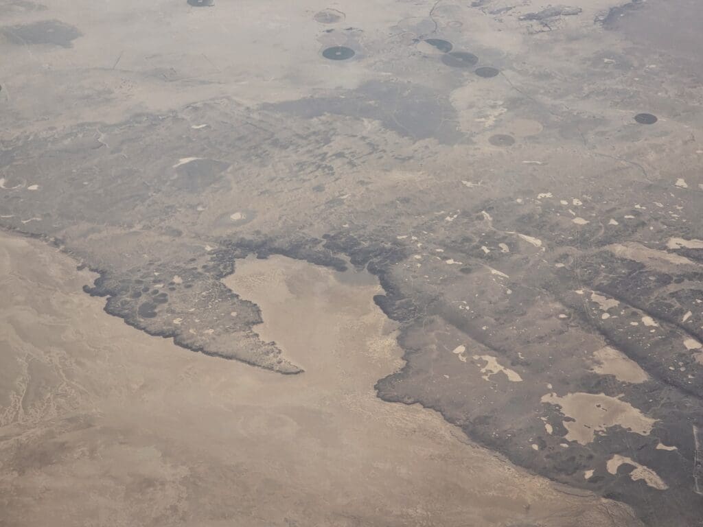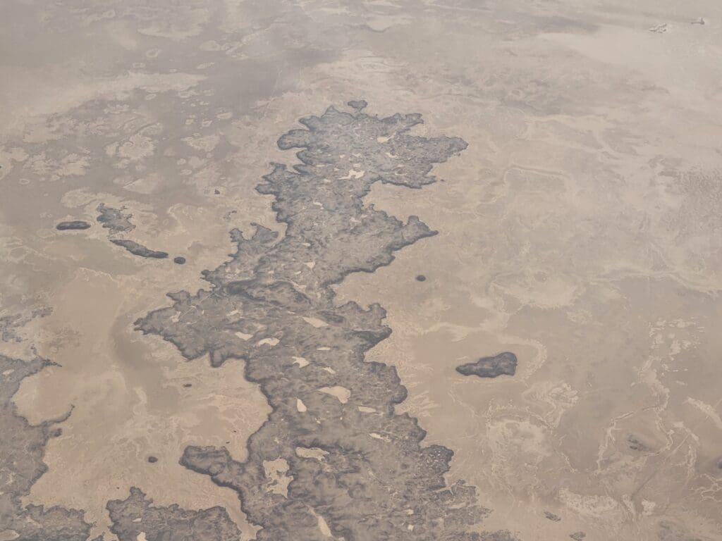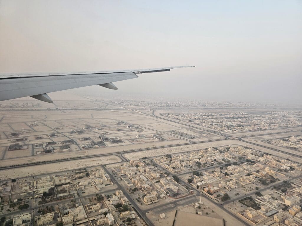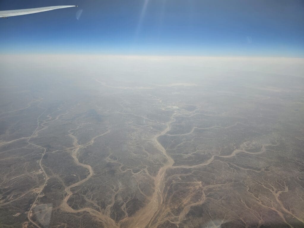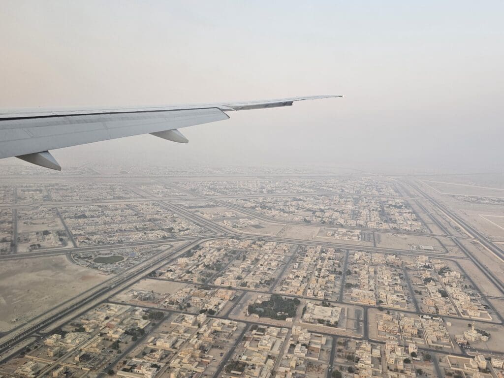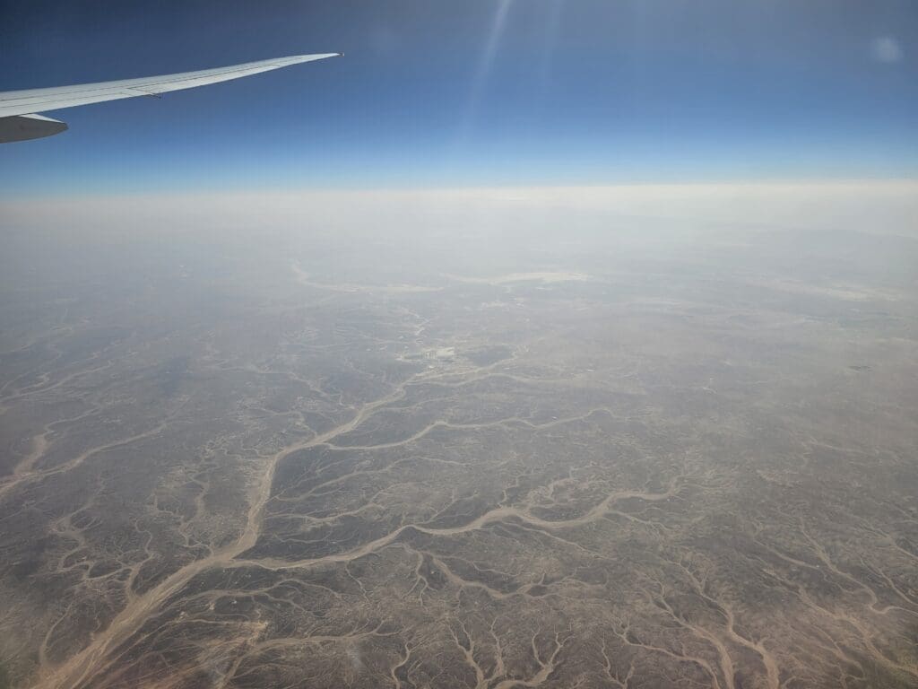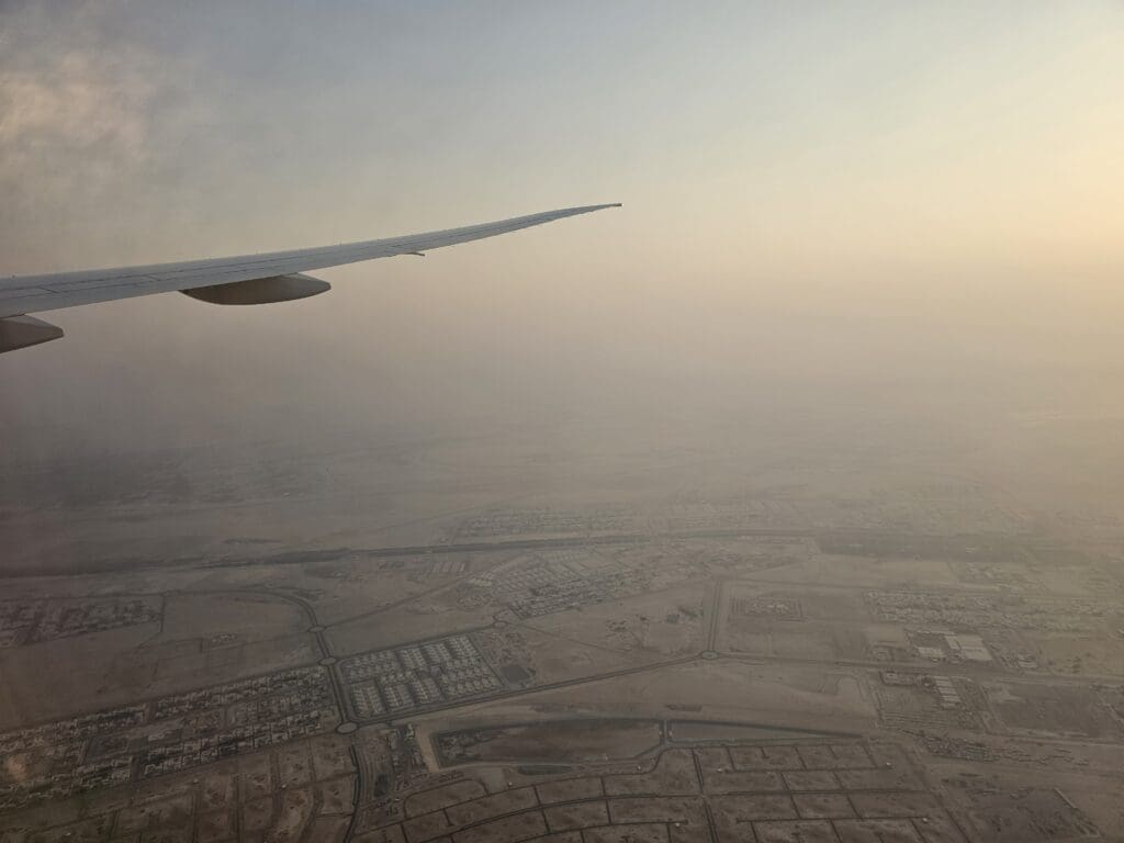 For the first fifteen minutes or so of our flight across Saudi Arabia, the Boeing soared high above the King Salman bin Abdulaziz Royal Natural Reserve – the world’s fourth-largest wild reserve. Heading onwards, the first significant settlement I spotted in Saudi Arabia that afternoon took the form of Sakaka, which was soon replaced by the impressive expanse of the orange dunes of the Arabian Desert. Once in a while, the occasional remote road could be seen cutting through this however, for much of our journey, few signs of human life could be seen below. After a while, all of a sudden the strange sight of what seemed to be an octagon-shaped town appeared out of nowhere. Later research revealed this to be the King Khalid Military City, which was designed and constructed by the American military in the seventies and eighties and remains inhabited.