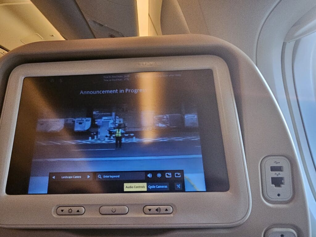 Once the Captain’s announcement had reached its end, the Cabin Manager performed their welcome in Arabic and English as the final ULDs could be seen being loaded onto the aircraft. This announcement consisted of the usual information, however, they also advised passengers that the usage of powerbanks was prohibited during the flight. Whilst this is the first time I’ve heard of these being banned onboard, given the number of incidents involving the combustion of such devices across the world, this is not particularly surprising. That said, I did spot multiple passengers using these throughout the flight so I am not too sure how well this was policed. With ten minutes to go until our departure time, boarding was announced as complete and the ground staff were requested to leave the aircraft.