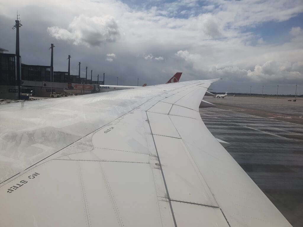 A little over 25 minutes behind the flight’s scheduled departure time, at 1136 the Dreamliner was pushed back away from the stand and a series of whining and humming could be heard as the aircraft’s two large Rolls-Royce Trent 1000 engines powered up into life after which the flaps were extended with a loud whining sound. At 1140, the aircraft commenced its journey to the end of Runway 25, arriving there four minutes later where it taxied onto this without any holding and commenced its powerful rolling takeoff. After speeding past Terminal 1, the Boeing rotated upwards into the grey moody skies that surrounded Germany’s capital that morning and bumped around a little as it made its way upward towards the clouds.