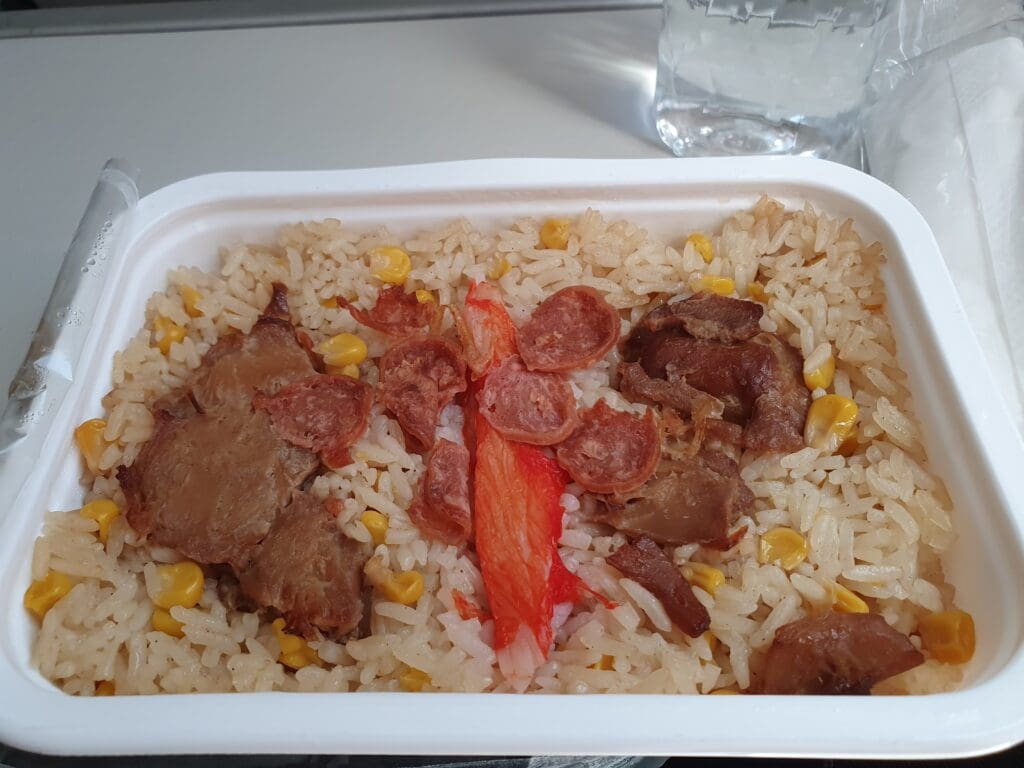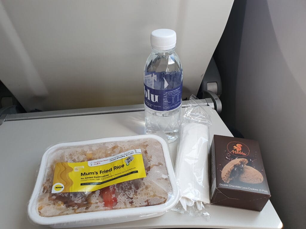 A few minutes after the distribution of meals commenced, a friendly flight attendant reached my row and after showing my boarding pass, four items were passed over to me. These consisted of a sachet containing plastic cutlery and a serviette, a 300ml bottle of Malaysian still water, a box containing three chocolate biscuits and the main dish, Mum’s Fried Rice. I cannot help but think that the crew would have been able to conduct this service at a quicker pace had passengers been handed items on trays or perhaps in boxes, although I assume that for whatever reason Scoot considered and discredited this option. Upon tucking into this, I found the main dish to be a little bland and dry, and whilst the meal filled a gap, I did not consider this to be good value for the €11 that I had paid for this. Once passengers’ pre-booked items had been distributed, the main buy-on-board service commenced, which offered passengers a range of drinks and snacks alongside a limited selection of hot meals. During this service, noticing that I had already polished off my meal, a crew member collected the empty packaging – their proactiveness added to the relatively positive impression that the crew had given me thus far in the flight.