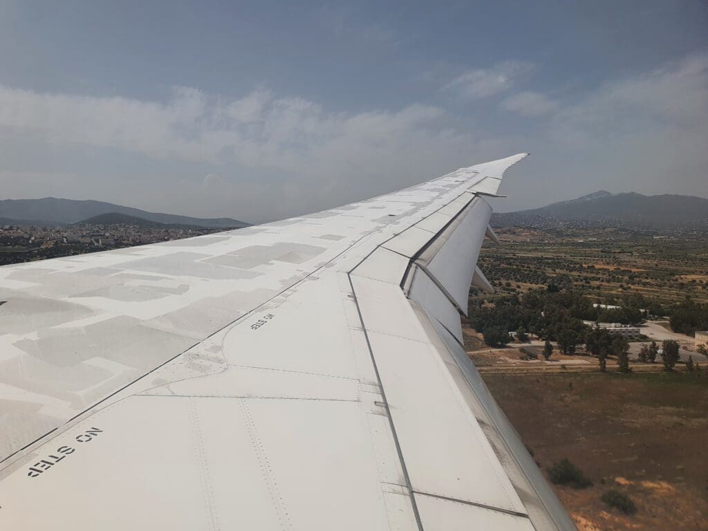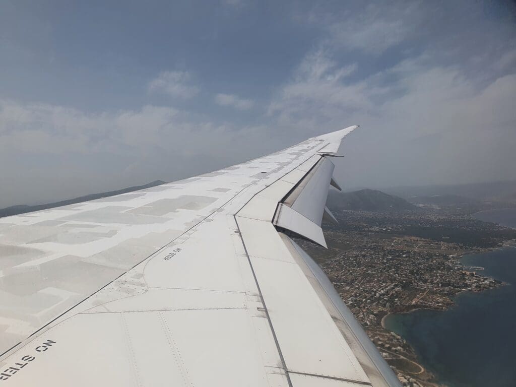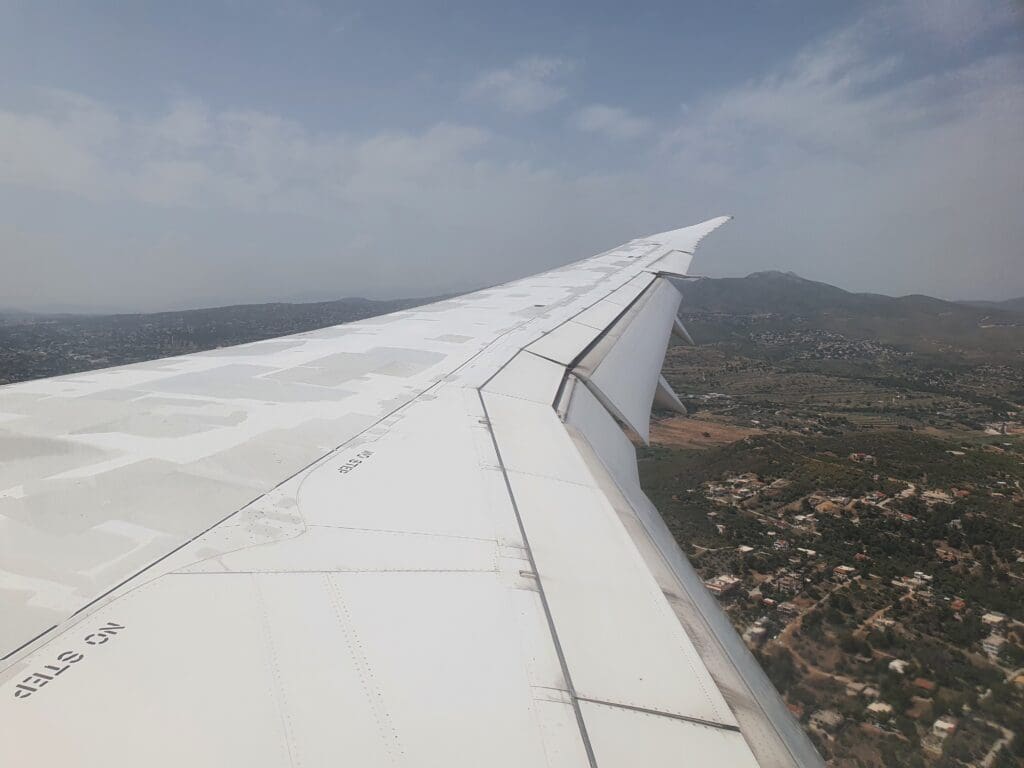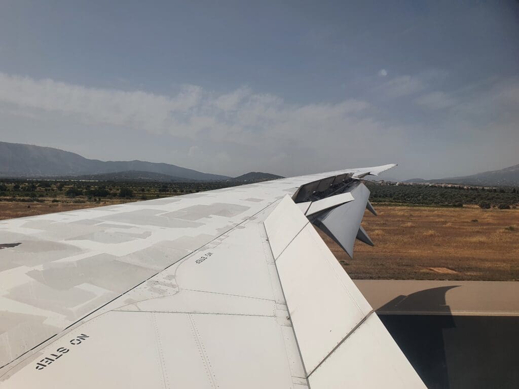 After turning right onto a heading that would take the aircraft towards Athens, the aircraft crossed over Euboea at one of its narrowest points before making its way across the Petalloi Gulf and crossing over the coastline of the mainland near the town of Rafina at which point the landing gear and flaps were extended in preparation for our arrival. Meanwhile below, as the aircraft sped towards the airport, a mixture of residential areas and slightly sandy-coloured fields filled the landscape below as the Dreamliner approached Athens Airport from the east and at 1511 the aircraft performed a gentle touchdown on Athens Airport’s Runway 21R before gently decelerating and vacating this to the left. As the aircraft left the runway, the Purser performed a welcome announcement and thanked passengers for flying with Scoot, meanwhile outside a former Olympic Airways Boeing 737-200 now used for training could be seen.