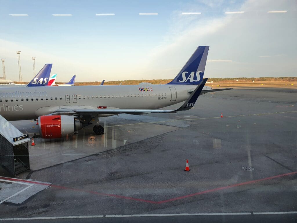 After grabbing a sandwich and a bottle of juice for breakfast, I headed back down to the commuter train platforms with five minutes to go until the Marsta service. Following a short wait a Coradia Nordic SL X60 train appeared and I boarded this along with plenty of other passengers. Despite being fairly busy, I managed to find a window seat although with the sun yet to rise for much of the journey, little could be seen as this ploughed northwards through Stockholm’s suburbs. Almost forty minutes after leaving Stockholm Central, the train pulled into Marsta where I disembarked and followed the crowds to the neighbouring rudimentary bus terminal. From there, the 583 bus regularly shuttles the short distance across to the airport, and I arrived with five minutes to spare until the next Arlanda-bound departure. As expected, this was full, with most onboard appearing to either be airport staff members or passengers. After leaving Marsta, the bus made a few stops before Arlanda Airport’s remote stands appeared. Almost two hours after leaving the hotel, the bus came to a gentle stop outside the entrance to SkyCity.
