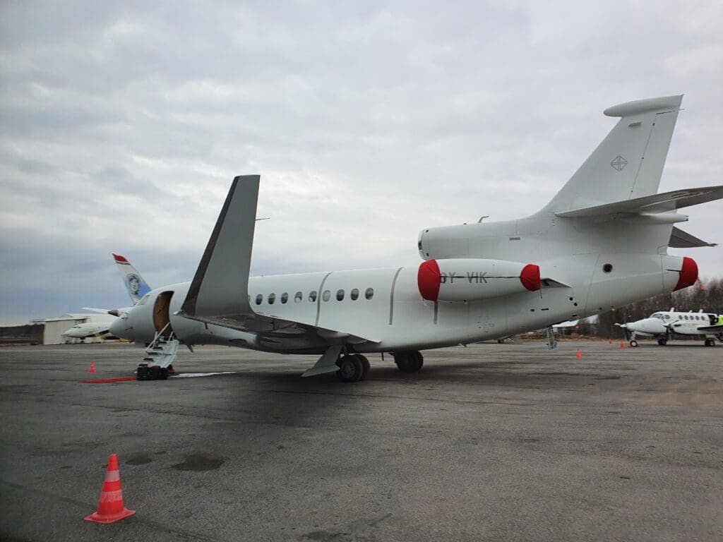 After all had taken their seats and strapped themselves in, the minibus pulled away from the terminal and made a quick journey through the fairly quiet streets of Arlanda Airport. No more than four minutes later, the minibus came to a halt just outside the Grafair Jet Centre whilst the gate to the apron slid open. Whilst the driver had seemed to have been somewhat of a speed demon on the public roads, as expected, once airside the minibus slowed down as it cautiously skirted around a luxurious Dassault Falcon 7X, operated by Danish carrier Air Alsie. Behind this, two King Airs could be seen, a Babcock air ambulance that was being readied for a morning mission to Mora via Stockholm Bromma, and the weathered-looking Beechcraft Super King Air 200 that would be heading up to Sveg.
